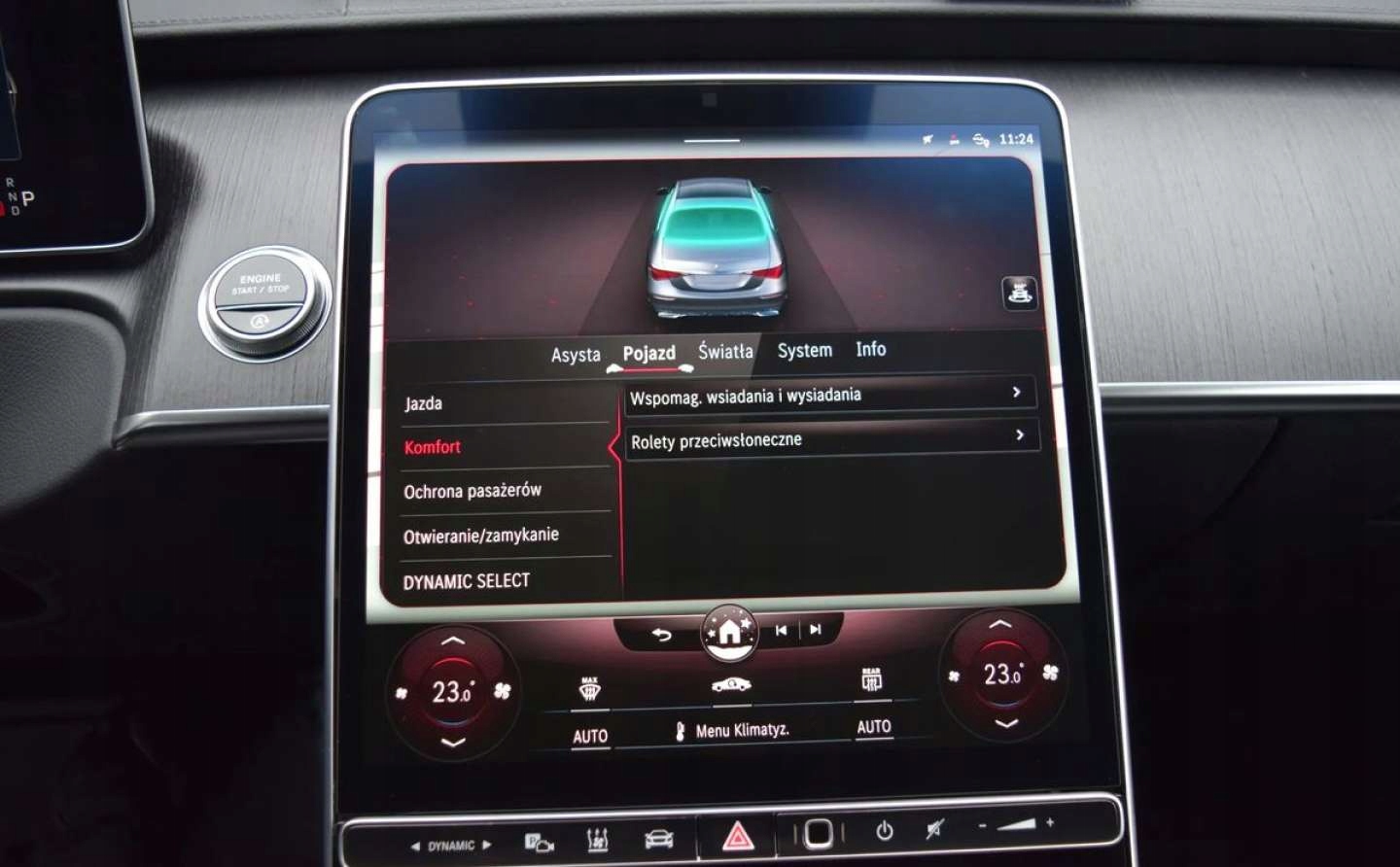 ABS, Alarm, ASR (kontrola trakcji), Asystent parkowania, Asystent pasa ruchu, Czujnik deszczu, Czujniki parkowania przednie, Czujniki parkowania tylne, Czujnik martwego pola, Czujnik zmierzchu, ESP (stabilizacja toru jazdy), HUD (wyświetlacz przezierny), Isofix, Kamera cofania, Kurtyny powietrzne, Poduszka powietrzna chroniąca kolana, Poduszka powietrzna kierowcy, Poduszka powietrzna pasażera, Poduszki boczne przednie, Poduszki boczne tylne, Elektryczne szyby przednie, Elektryczne szyby tylne, Elektrycznie ustawiane fotele, Elektrycznie ustawiane lusterka, Ogrzewanie postojowe, Podgrzewana kierownica, Podgrzewana przednia szyba, Podgrzewane lusterka boczne, Podgrzewane przednie siedzenia, Podgrzewane tylne siedzenia, Przyciemniane szyby, Tapicerka skórzana, Wentylowane fotele, Wielofunkcyjna kierownica, Wspomaganie kierownicy, Zawieszenie adaptacyjne, Skórzana kierownica, Bluetooth, Gniazdo USB, Nawigacja GPS, Radio fabryczne, Alufelgi, Bezkluczykowy dostęp, Elektrochromatyczne lusterka boczne, Łopatki zmiany biegów, Ogranicznik prędkości, System Start-Stop, Tempomat aktywny