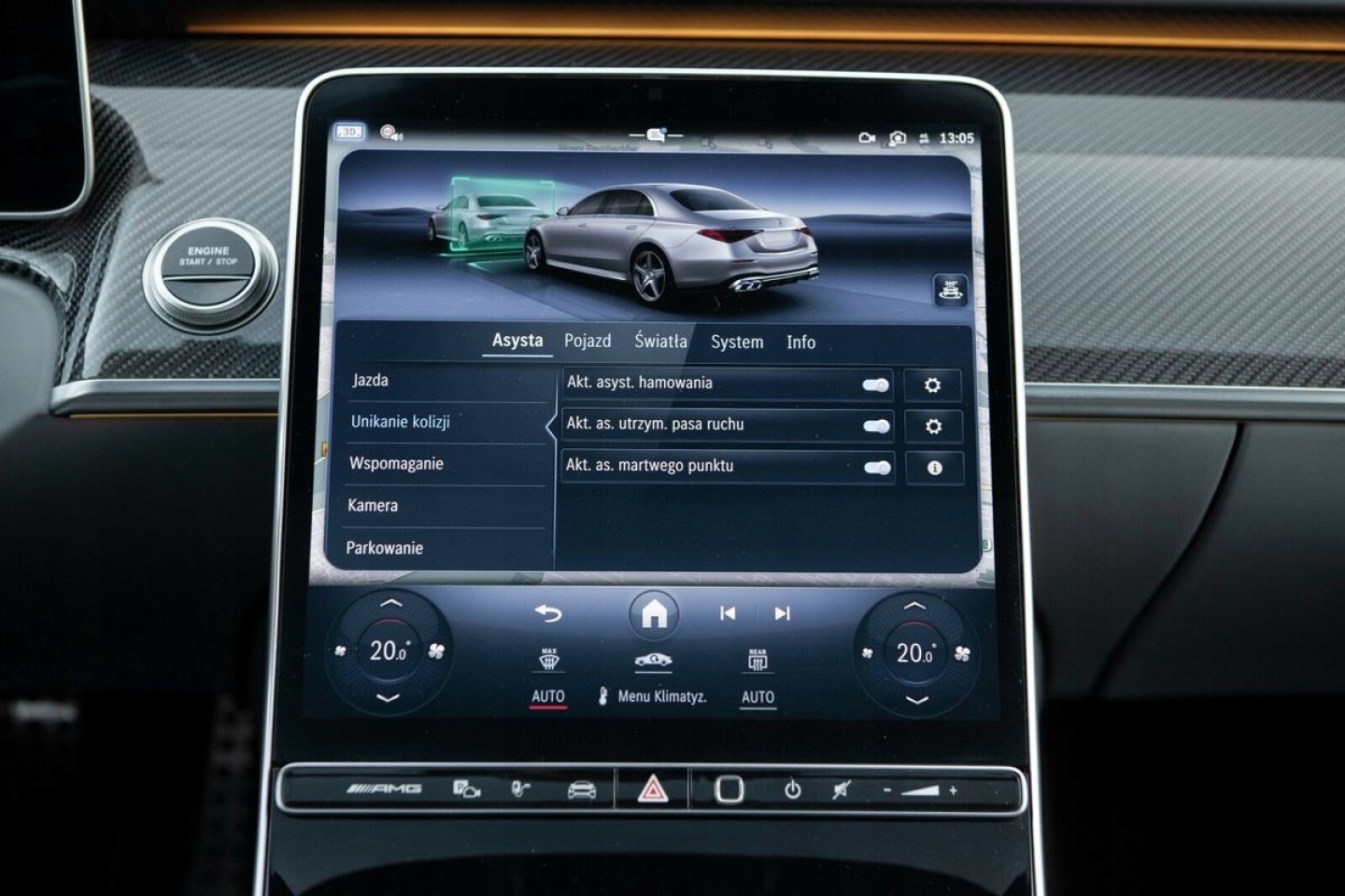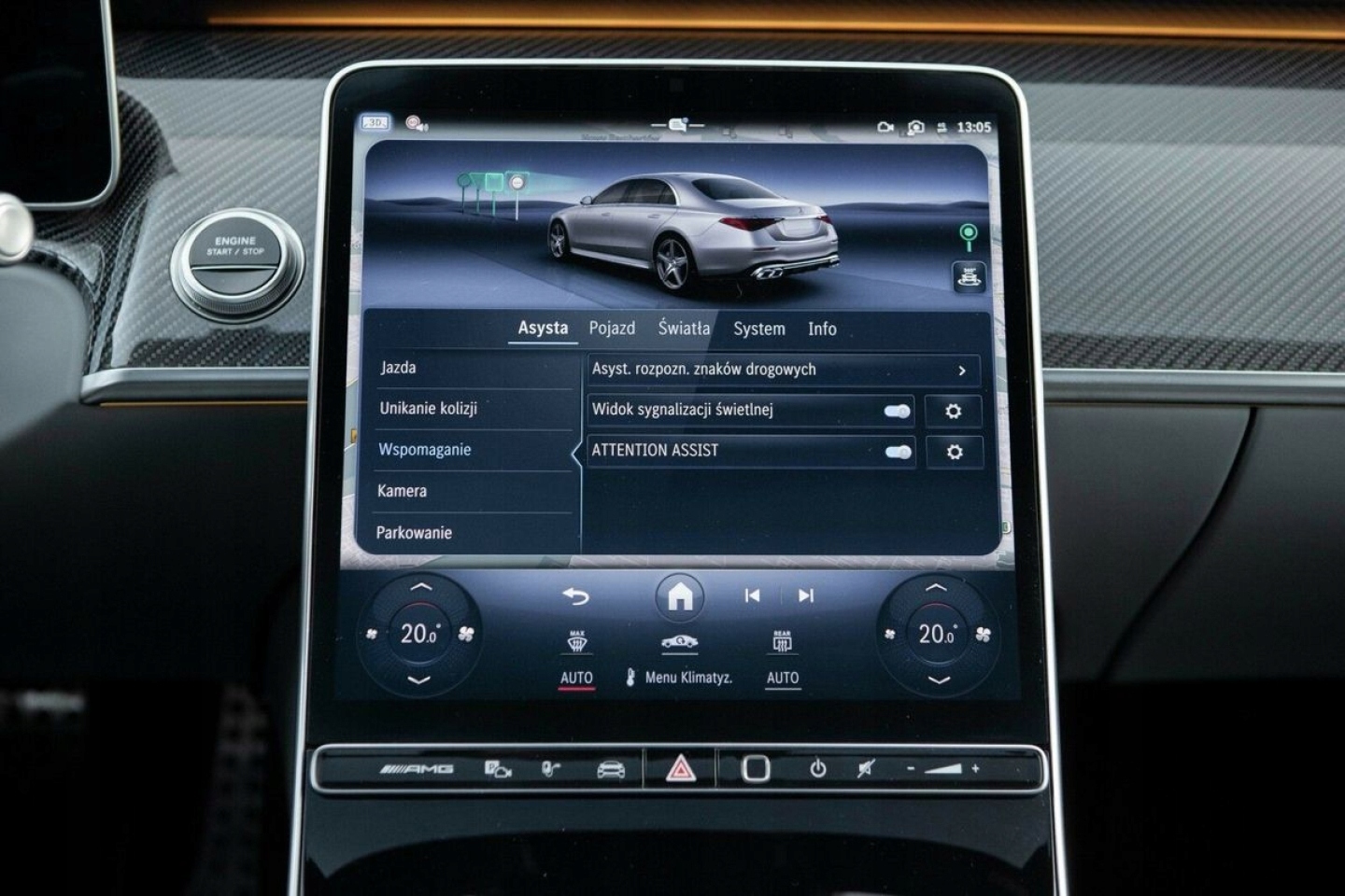 ABS, ASR (kontrola trakcji), Asystent parkowania, Asystent pasa ruchu, Czujnik deszczu, Czujniki parkowania przednie, Czujniki parkowania tylne, Czujnik martwego pola, Czujnik zmierzchu, ESP (stabilizacja toru jazdy), HUD (wyświetlacz przezierny), Isofix, Kurtyny powietrzne, Poduszka powietrzna chroniąca kolana, Poduszka powietrzna kierowcy, Poduszka powietrzna pasażera, Poduszki boczne przednie, Poduszki boczne tylne, Elektryczne szyby przednie, Elektryczne szyby tylne, Elektrycznie ustawiane fotele, Elektrycznie ustawiane lusterka, Podgrzewana kierownica, Podgrzewane lusterka boczne, Podgrzewane przednie siedzenia, Podgrzewane tylne siedzenia, Przyciemniane szyby, Tapicerka skórzana, Wentylowane fotele, Wielofunkcyjna kierownica, Wspomaganie kierownicy, Skórzana kierownica, Bluetooth, Gniazdo USB, Nawigacja GPS, Radio fabryczne, Alufelgi, Bezkluczykowy dostęp, Elektrochromatyczne lusterka boczne, Łopatki zmiany biegów, Ogranicznik prędkości, System Start-Stop, Szyberdach, Tempomat aktywny