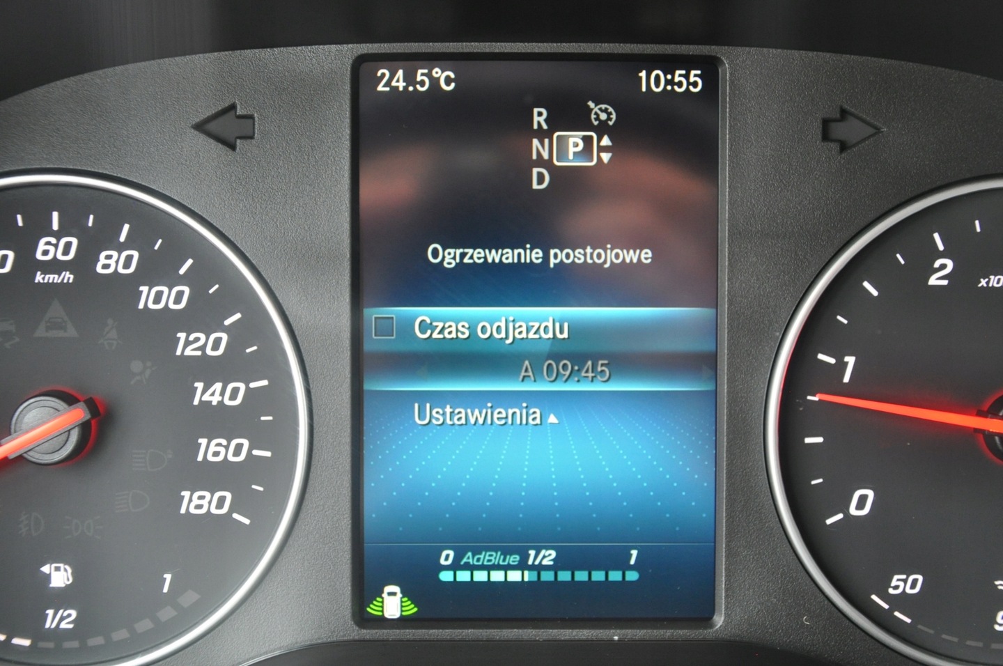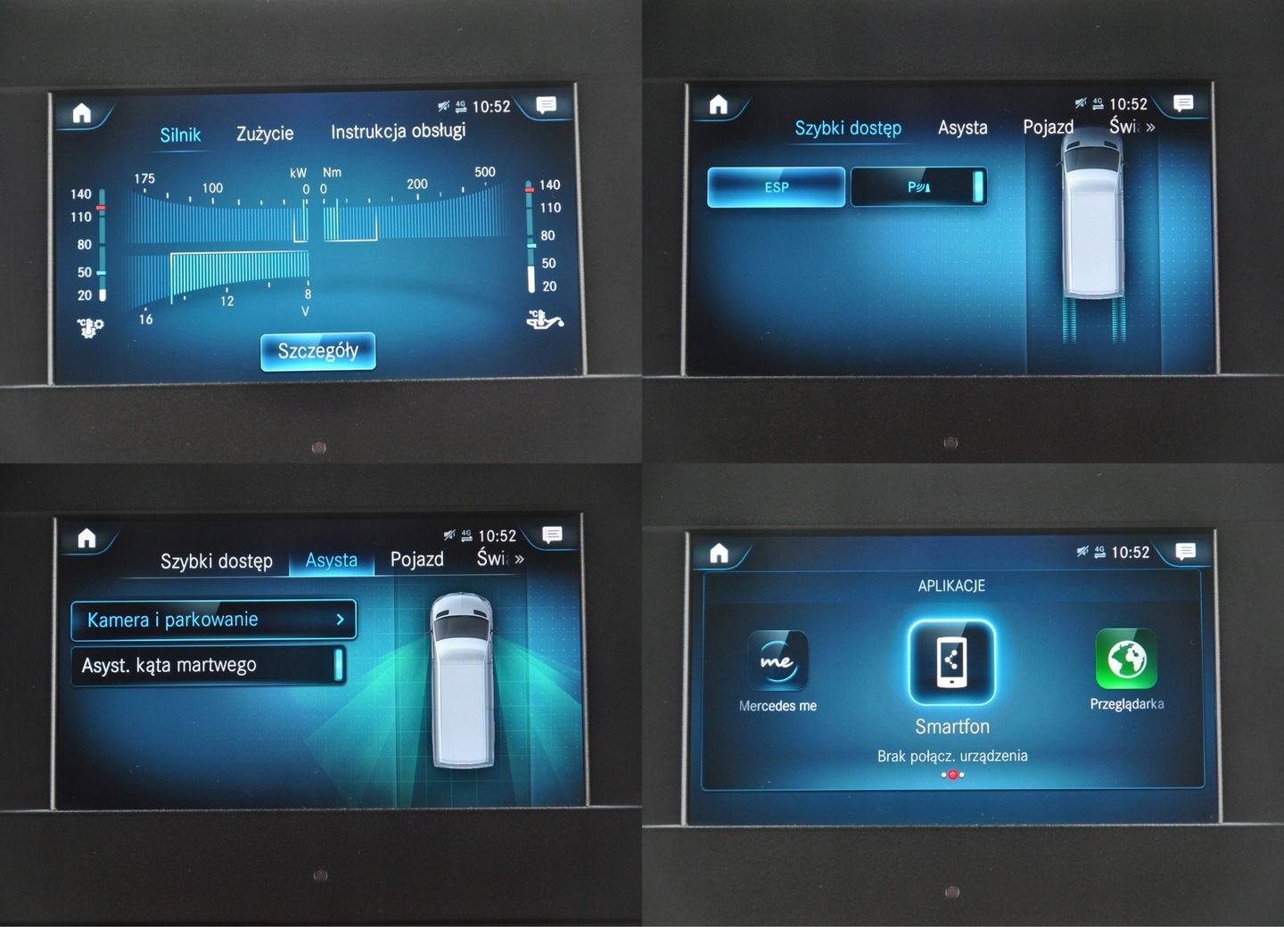 ABS, ASR (kontrola trakcji), Czujnik deszczu, Czujniki parkowania przednie, Czujniki parkowania tylne, Czujnik martwego pola, Czujnik zmierzchu, ESP (stabilizacja toru jazdy), Immobilizer, Kamera cofania, Poduszka powietrzna kierowcy, Poduszka powietrzna pasażera, Elektryczne szyby przednie, Elektrycznie ustawiane lusterka, Podgrzewana tylna szyba, Podgrzewane lusterka boczne, Przyciemniane szyby, Skórzana kierownica, Tapicerka ciemna, Wielofunkcyjna kierownica, Wspomaganie kierownicy, Bluetooth, Gniazdo USB, Nawigacja GPS, Radio fabryczne, Alufelgi, Centralny zamek, Komputer pokładowy, Liczniki LCD, Łopatki zmiany biegów, Otwieranie pilotem, System Start-Stop, Tempomat