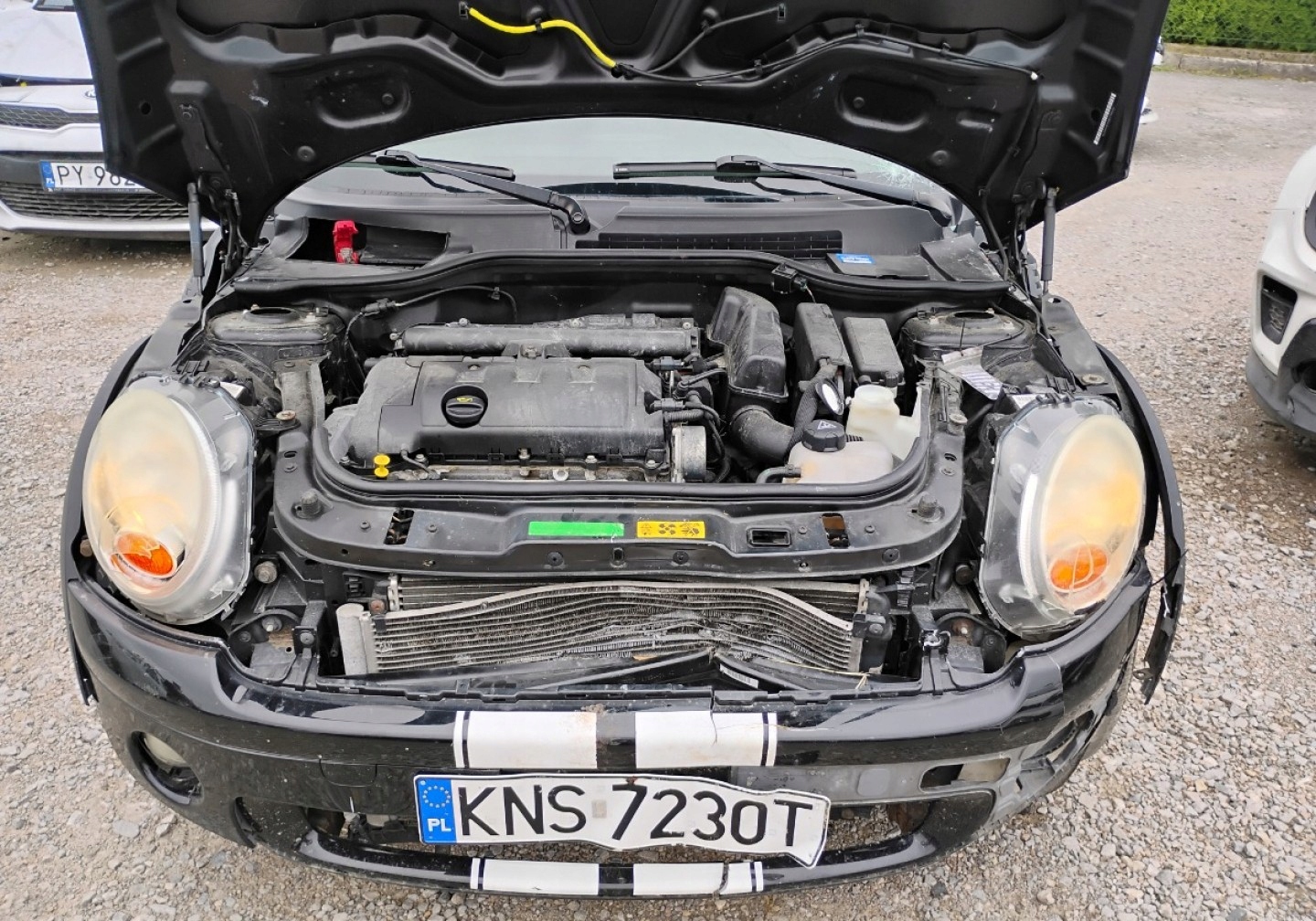 MINI ONE 2009r, 1.4 Benzyna. Uszkodzony lewy przod. Jezdzi. 1.4 Benzyna