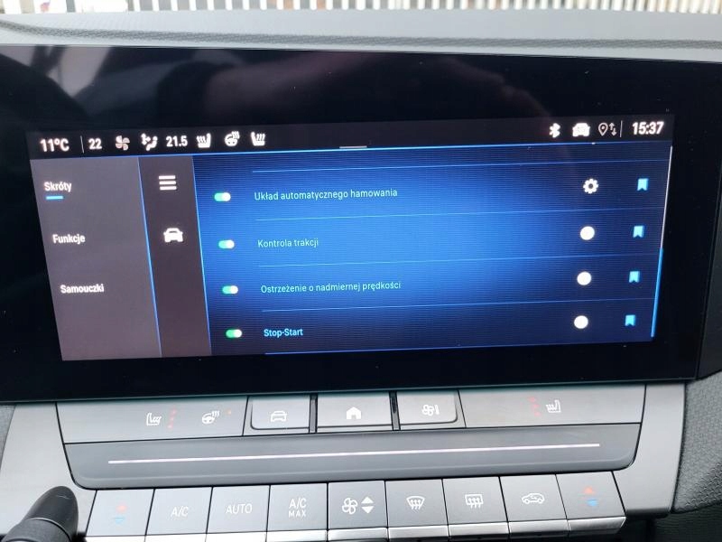 ABS, Alarm, ASR (kontrola trakcji), Asystent pasa ruchu, Czujnik deszczu, Czujniki parkowania przednie, Czujniki parkowania tylne, Czujnik zmierzchu, ESP (stabilizacja toru jazdy), Elektryczne szyby przednie, Elektryczne szyby tylne, Elektrycznie ustawiane lusterka, Podgrzewana tylna szyba, Podgrzewane lusterka boczne, Podgrzewane przednie siedzenia, Przyciemniane szyby, Skórzana kierownica, Tapicerka ciemna, Tapicerka tekstylna, Wielofunkcyjna kierownica, Wspomaganie kierownicy, Bluetooth, Gniazdo USB, Radio fabryczne, Alufelgi, Centralny zamek, Komputer pokładowy, Relingi dachowe, System Start-Stop, Tempomat