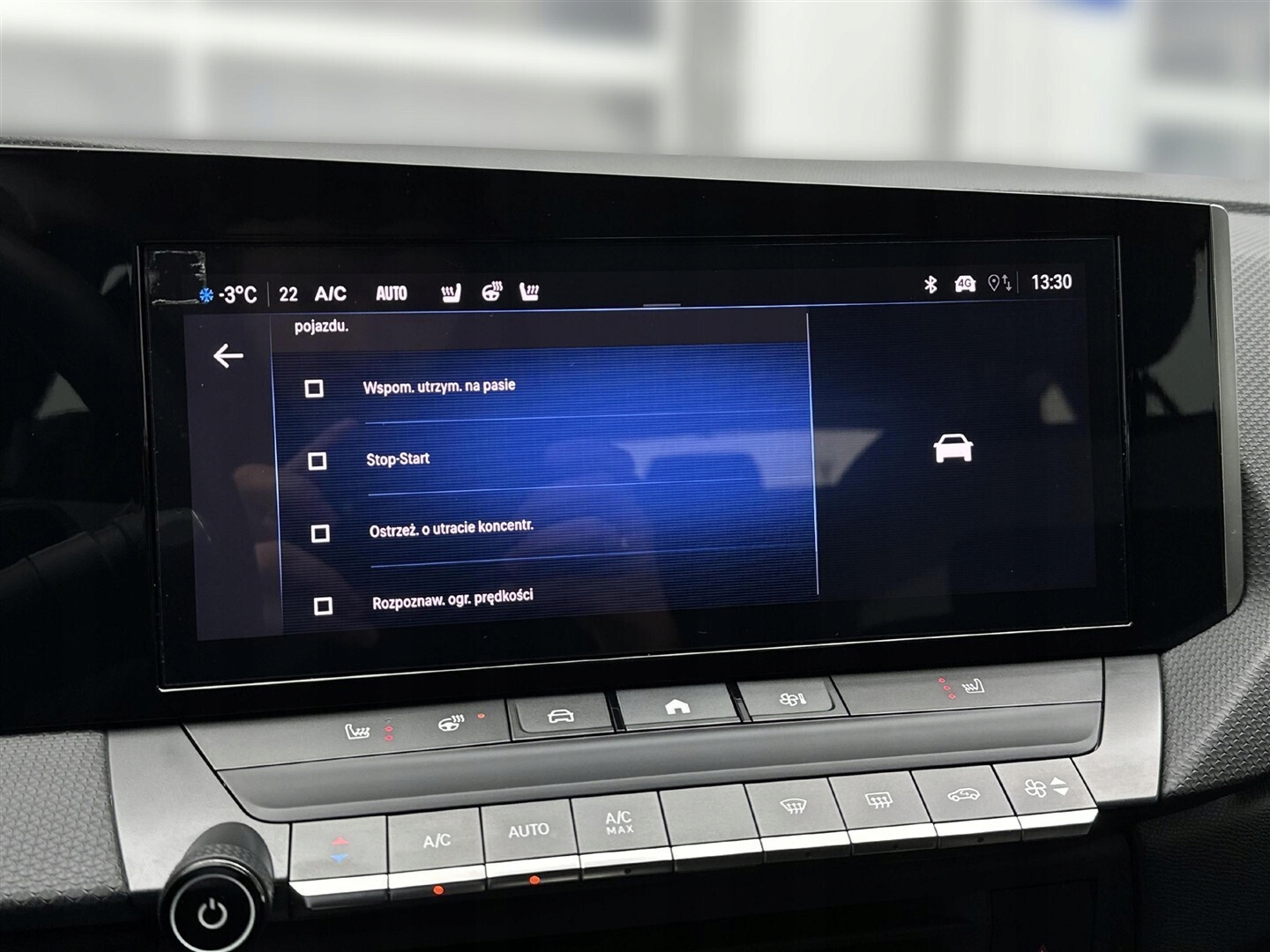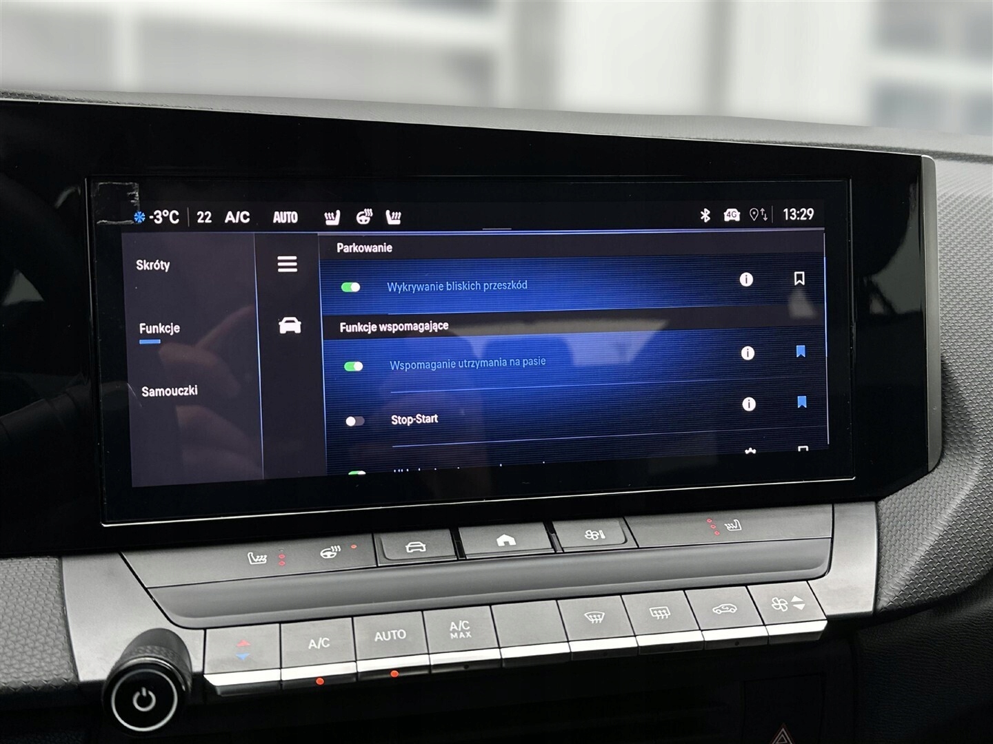 Czujnik deszczu, Czujnik zmierzchu, Kamera cofania, Czujniki parkowania przednie, Czujniki parkowania tylne, Asystent parkowania, ABS, ESP (stabilizacja toru jazdy), Isofix, Poduszka powietrzna chroniąca kolana, Poduszka powietrzna kierowcy, Poduszka powietrzna pasażera, Elektryczne szyby przednie, Elektryczne szyby tylne, Podgrzewane przednie siedzenia, Przyciemniane szyby, Elektrycznie ustawiane lusterka, Wspomaganie kierownicy, Bluetooth, Gniazdo USB, Radio niefabryczne, Ogranicznik prędkości, System Start-Stop, Tempomat, Alufelgi