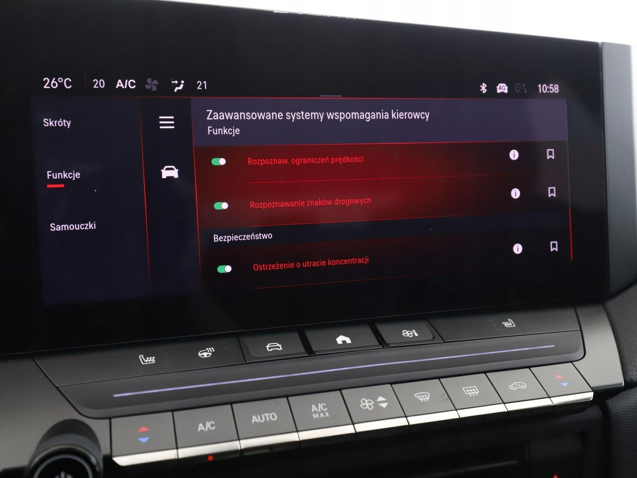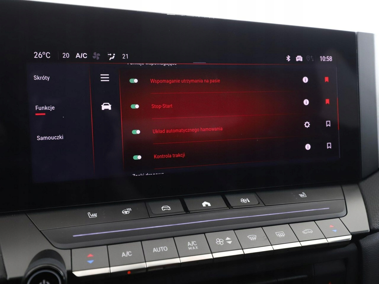 ABS, Alarm, ASR (kontrola trakcji), Czujnik deszczu, Czujniki parkowania tylne, Immobilizer, Czujniki parkowania przednie, Poduszka powietrzna kierowcy, Poduszka powietrzna pasażera, Poduszki boczne przednie, ESP (stabilizacja toru jazdy), Isofix, Kamera cofania, Elektryczne szyby przednie, Elektryczne szyby tylne, Elektrycznie ustawiane lusterka, Podgrzewane przednie siedzenia, Przyciemniane szyby, Wielofunkcyjna kierownica, Wspomaganie kierownicy, Elektrycznie ustawiane fotele, Tapicerka tekstylna, Bluetooth, Nawigacja GPS, Bezkluczykowy dostęp, Centralny zamek, Komputer pokładowy, Tempomat, Elektrochromatyczne lusterko wsteczne, System Start-Stop, Hak, Łopatki zmiany biegów, Tempomat aktywny