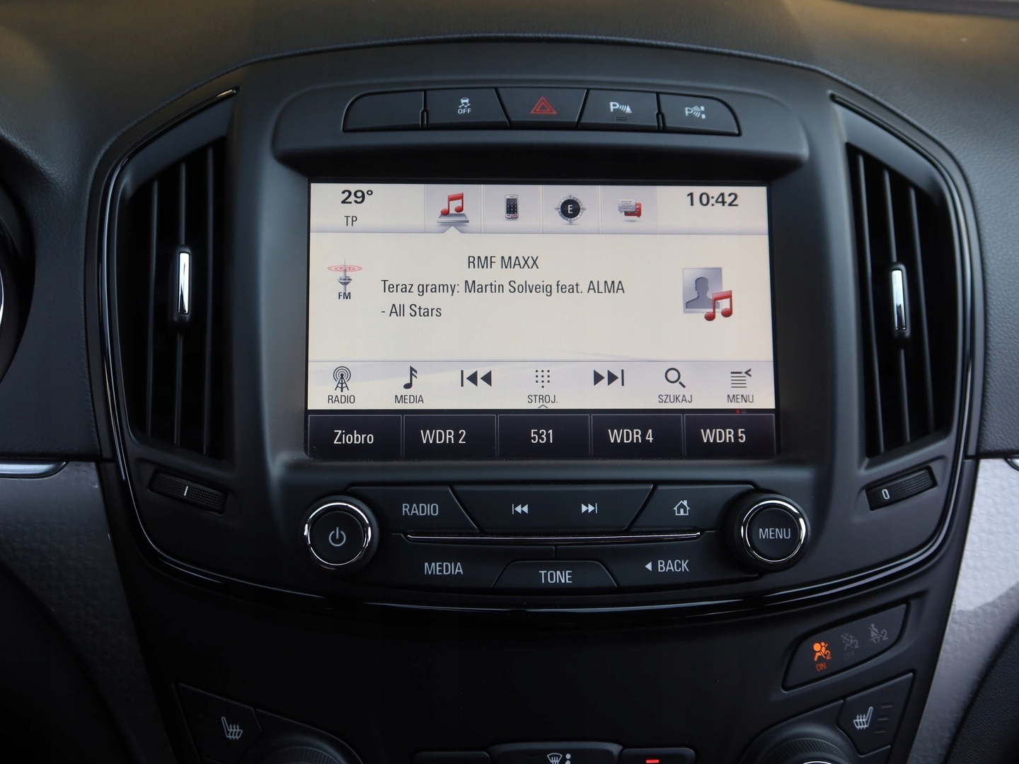 Poduszka powietrzna pasażera, ASR (kontrola trakcji), ESP (stabilizacja toru jazdy), Poduszki boczne przednie, Isofix, ABS, Poduszka powietrzna kierowcy, Poduszka powietrzna chroniąca kolana, Elektryczne szyby przednie, Przyciemniane szyby, Wspomaganie kierownicy, Elektrycznie ustawiane fotele, Wielofunkcyjna kierownica, Podgrzewane przednie siedzenia, Elektrycznie ustawiane lusterka, Elektryczne szyby tylne, MP3, CD, Bluetooth, Gniazdo SD, Nawigacja GPS, Gniazdo USB, Ogranicznik prędkości, Tempomat, Otwieranie pilotem, Komputer pokładowy