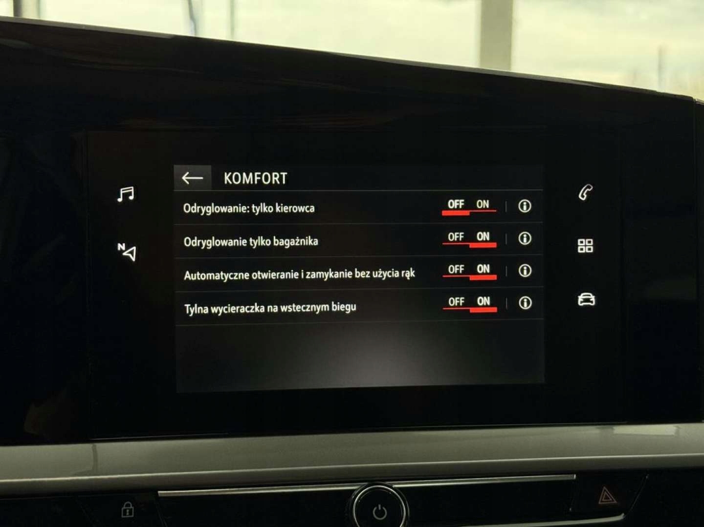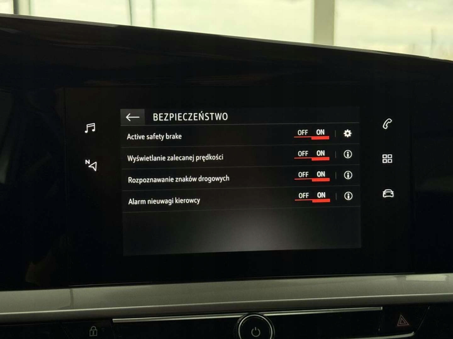 ABS, ASR (kontrola trakcji), Czujnik deszczu, Czujniki parkowania tylne, Czujnik zmierzchu, ESP (stabilizacja toru jazdy), Isofix, Kamera cofania, Kurtyny powietrzne, Poduszka powietrzna kierowcy, Poduszka powietrzna pasażera, Poduszki boczne przednie, Elektryczne szyby przednie, Elektryczne szyby tylne, Elektrycznie ustawiane lusterka, Wielofunkcyjna kierownica, Wspomaganie kierownicy, Skórzana kierownica, Bluetooth, Gniazdo USB, Nawigacja GPS, Radio fabryczne, Alufelgi, Bezkluczykowy dostęp, Elektrochromatyczne lusterka boczne, Łopatki zmiany biegów, System Start-Stop, Tempomat