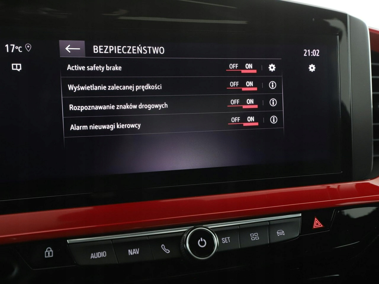 ABS, ASR (kontrola trakcji), Czujnik deszczu, Czujniki parkowania tylne, Immobilizer, Asystent pasa ruchu, Czujnik martwego pola, Czujniki parkowania przednie, Poduszka powietrzna kierowcy, Poduszka powietrzna pasażera, Poduszki boczne przednie, ESP (stabilizacja toru jazdy), Isofix, Kamera cofania, Elektryczne szyby przednie, Elektryczne szyby tylne, Elektrycznie ustawiane lusterka, Przyciemniane szyby, Wielofunkcyjna kierownica, Wspomaganie kierownicy, Tapicerka tekstylna, Bluetooth, Gniazdo USB, Radio fabryczne, Nawigacja GPS, Centralny zamek, Komputer pokładowy, Tempomat, System Start-Stop, Łopatki zmiany biegów, Tempomat aktywny