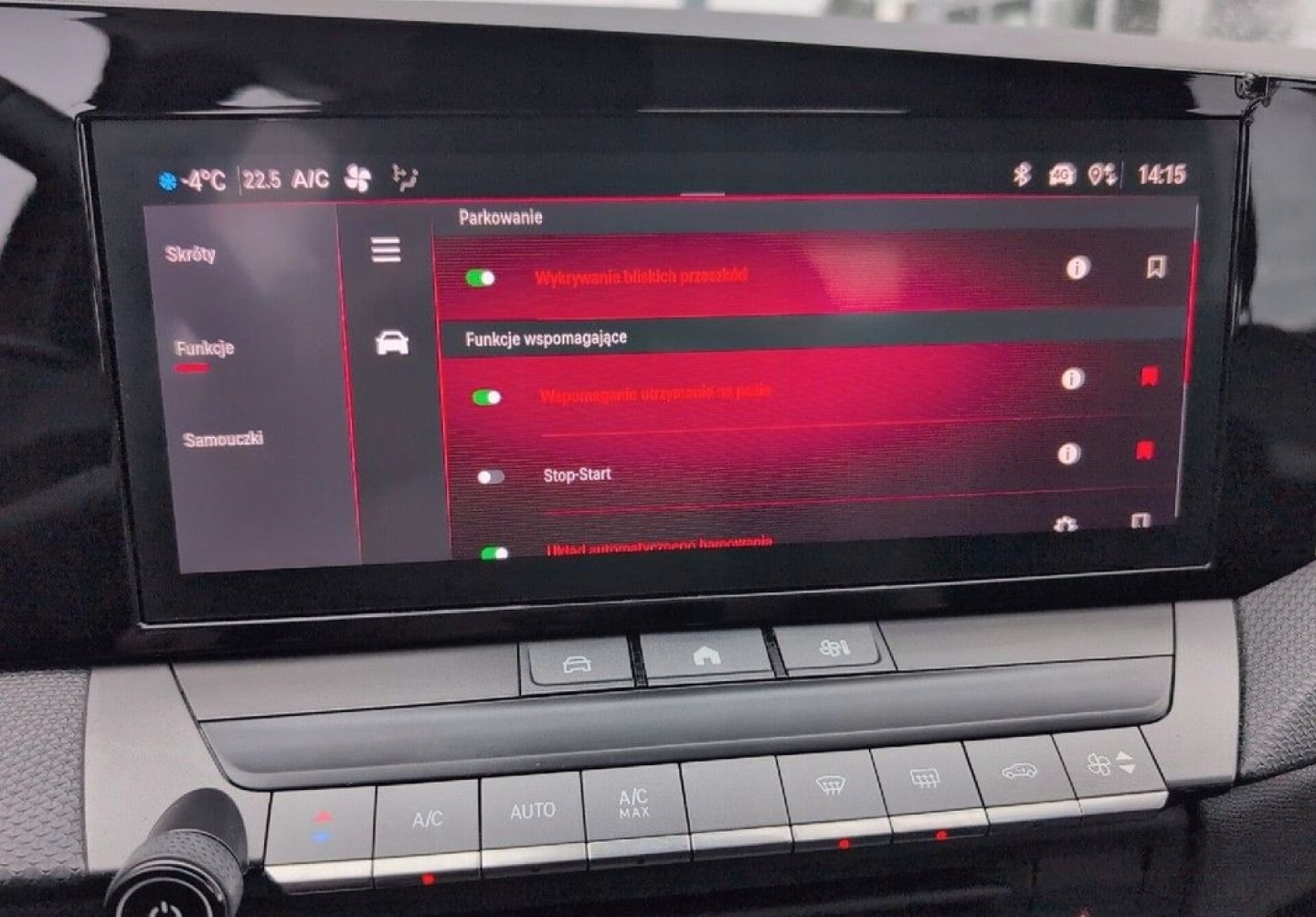 ABS, ASR (kontrola trakcji), Czujniki parkowania tylne, Czujnik martwego pola, ESP (stabilizacja toru jazdy), Isofix, Poduszka powietrzna pasażera, Poduszki boczne przednie, Elektryczne szyby przednie, Elektryczne szyby tylne, Elektrycznie ustawiane lusterka, Przyciemniane szyby, Wspomaganie kierownicy, Bluetooth, Radio fabryczne, Elektrochromatyczne lusterka boczne, Ogranicznik prędkości, System Start-Stop, Tempomat