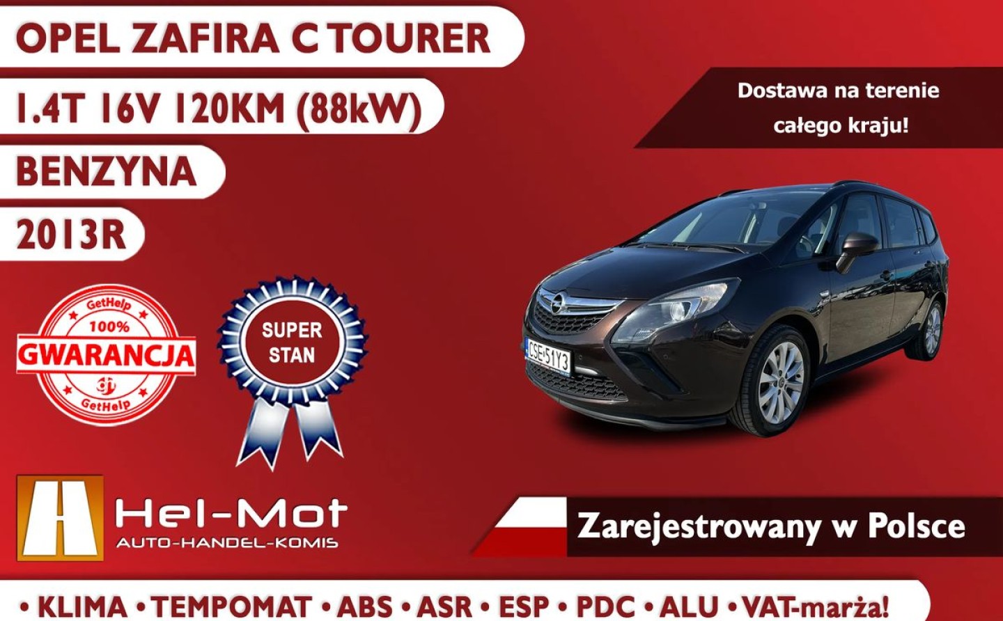 Opel Zafira 2013R, 1.4T 120KM, Tempomat, Klima, Alu, PDC Zarejestorwana w