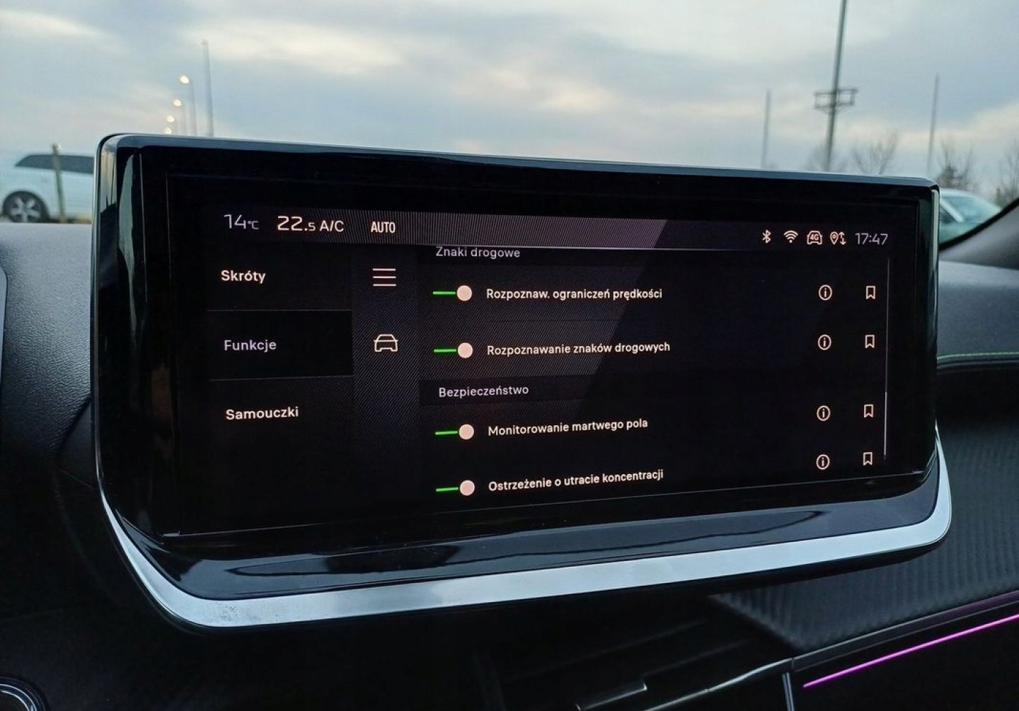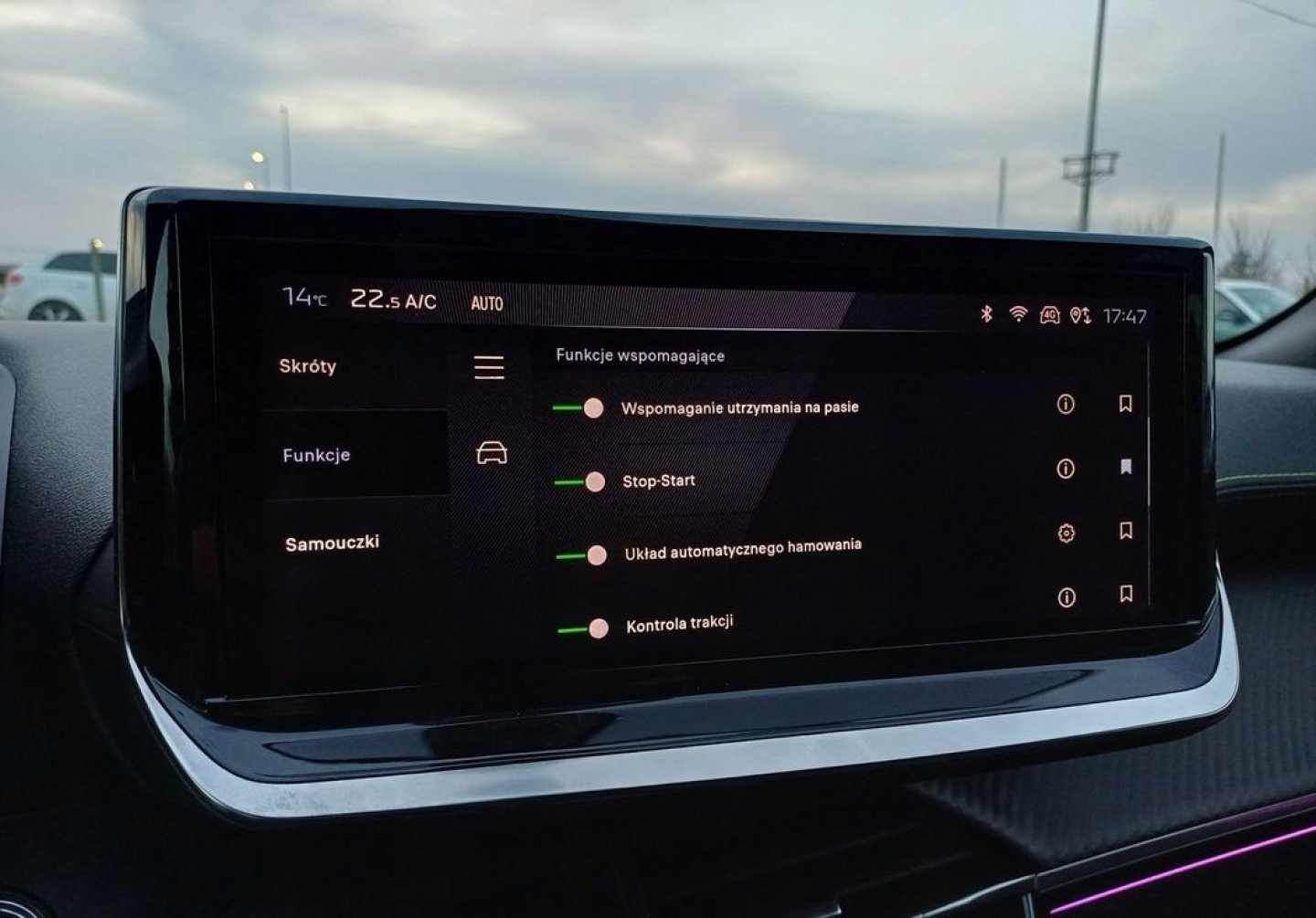 ABS, ASR (kontrola trakcji), Czujniki parkowania tylne, ESP (stabilizacja toru jazdy), Isofix, Kamera cofania, Poduszka powietrzna pasażera, Poduszki boczne przednie, Elektryczne szyby przednie, Elektryczne szyby tylne, Elektrycznie ustawiane fotele, Podgrzewane lusterka boczne, Przyciemniane szyby, Wspomaganie kierownicy, Bluetooth, Gniazdo USB, Radio fabryczne, Ogranicznik prędkości, System Start-Stop, Tempomat aktywny