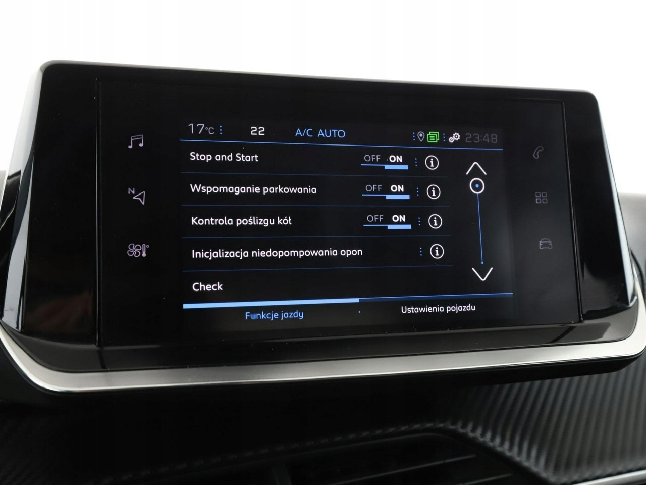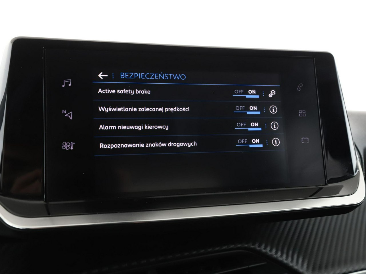 ABS, ASR (kontrola trakcji), Czujnik deszczu, Czujniki parkowania tylne, Immobilizer, Asystent pasa ruchu, Poduszka powietrzna kierowcy, Poduszka powietrzna pasażera, Poduszki boczne przednie, ESP (stabilizacja toru jazdy), Isofix, Kamera cofania, Elektryczne szyby przednie, Elektryczne szyby tylne, Elektrycznie ustawiane lusterka, Wielofunkcyjna kierownica, Wspomaganie kierownicy, Tapicerka skórzana, Gniazdo USB, Radio fabryczne, Nawigacja GPS, Centralny zamek, Komputer pokładowy, Relingi dachowe, Tempomat, System Start-Stop