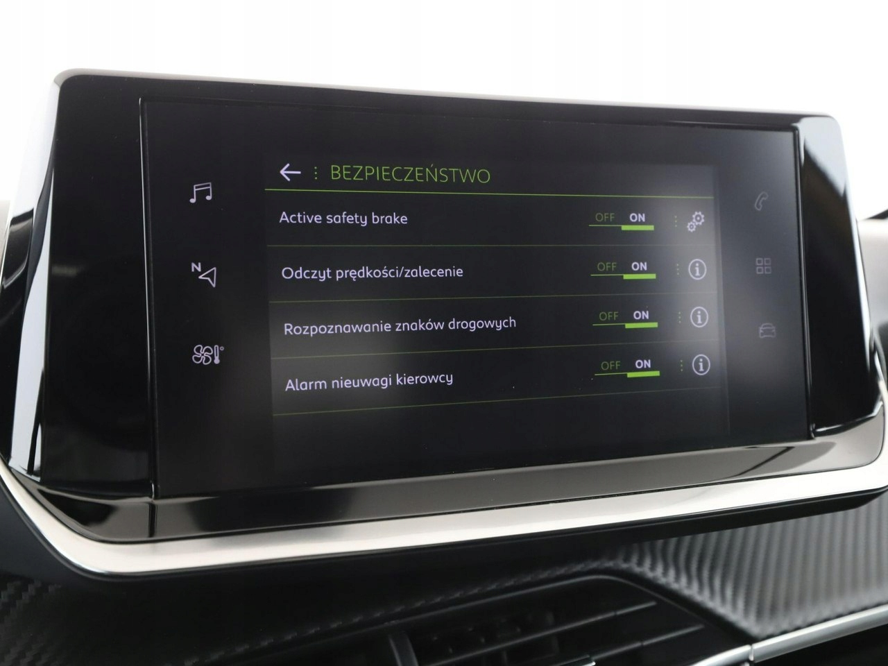 ABS, ASR (kontrola trakcji), Czujnik deszczu, Czujniki parkowania tylne, Immobilizer, Asystent pasa ruchu, Poduszka powietrzna kierowcy, Poduszka powietrzna pasażera, Poduszki boczne przednie, ESP (stabilizacja toru jazdy), Isofix, Kamera cofania, Elektryczne szyby przednie, Elektryczne szyby tylne, Elektrycznie ustawiane lusterka, Przyciemniane szyby, Wielofunkcyjna kierownica, Wspomaganie kierownicy, Tapicerka skórzana, Gniazdo USB, Radio fabryczne, Centralny zamek, Komputer pokładowy, Tempomat, System Start-Stop