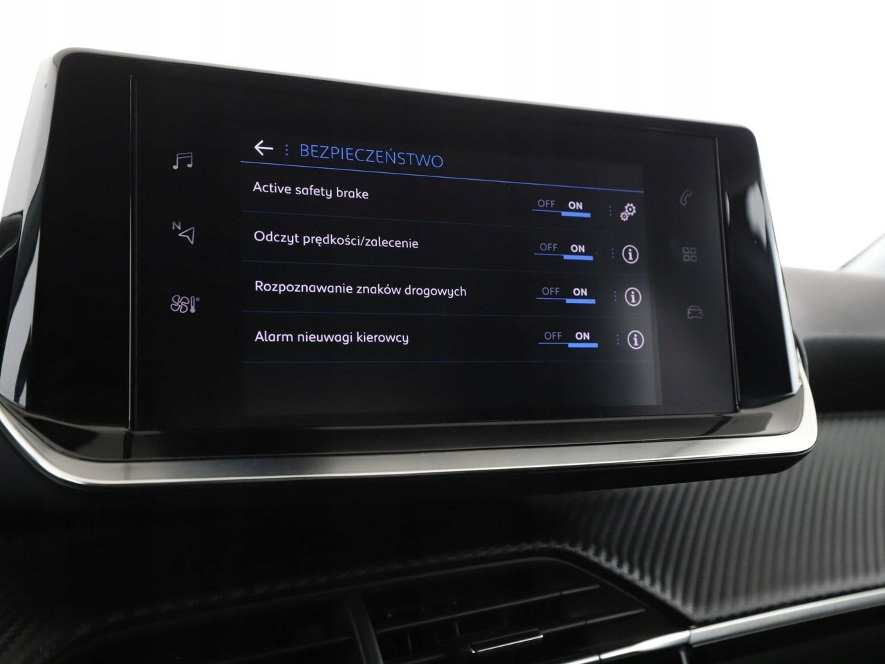 ABS, ASR (kontrola trakcji), Czujniki parkowania tylne, Immobilizer, Asystent pasa ruchu, Poduszka powietrzna kierowcy, Poduszka powietrzna pasażera, Poduszki boczne przednie, ESP (stabilizacja toru jazdy), Isofix, Elektryczne szyby przednie, Elektryczne szyby tylne, Elektrycznie ustawiane lusterka, Przyciemniane szyby, Wielofunkcyjna kierownica, Wspomaganie kierownicy, Tapicerka tekstylna, Radio fabryczne, Centralny zamek, Komputer pokładowy, Tempomat, System Start-Stop