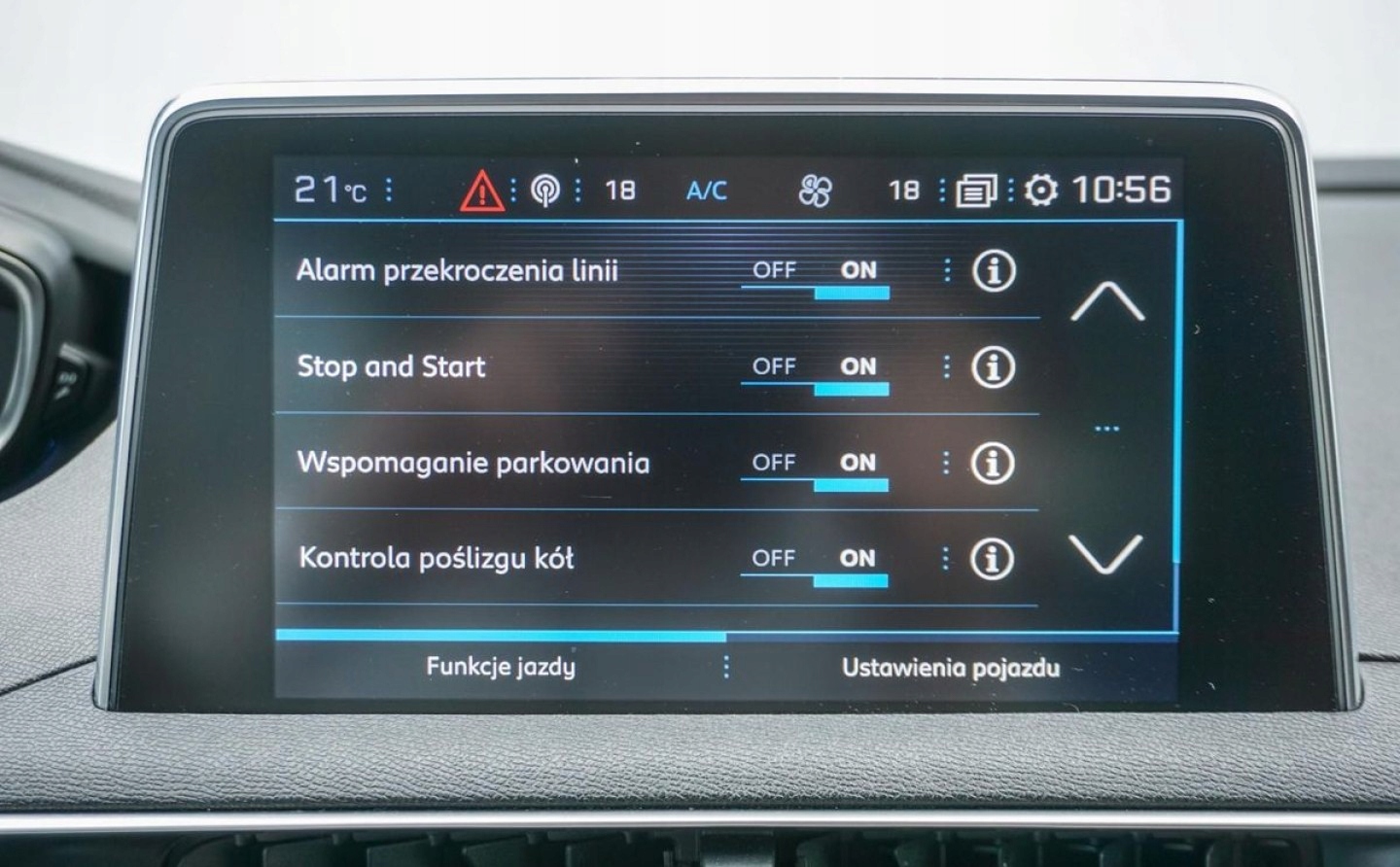 ABS, ASR (kontrola trakcji), Czujnik deszczu, Czujniki parkowania tylne, Czujnik zmierzchu, ESP (stabilizacja toru jazdy), Isofix, Kurtyny powietrzne, Poduszka powietrzna kierowcy, Poduszka powietrzna pasażera, Poduszki boczne przednie, Elektryczne szyby przednie, Elektryczne szyby tylne, Elektrycznie ustawiane lusterka, Podgrzewane lusterka boczne, Przyciemniane szyby, Tapicerka tekstylna, Wielofunkcyjna kierownica, Wspomaganie kierownicy, Skórzana kierownica, Bluetooth, Gniazdo USB, Nawigacja GPS, Radio fabryczne, Alufelgi, Elektrochromatyczne lusterka boczne, Łopatki zmiany biegów, Ogranicznik prędkości, Tempomat