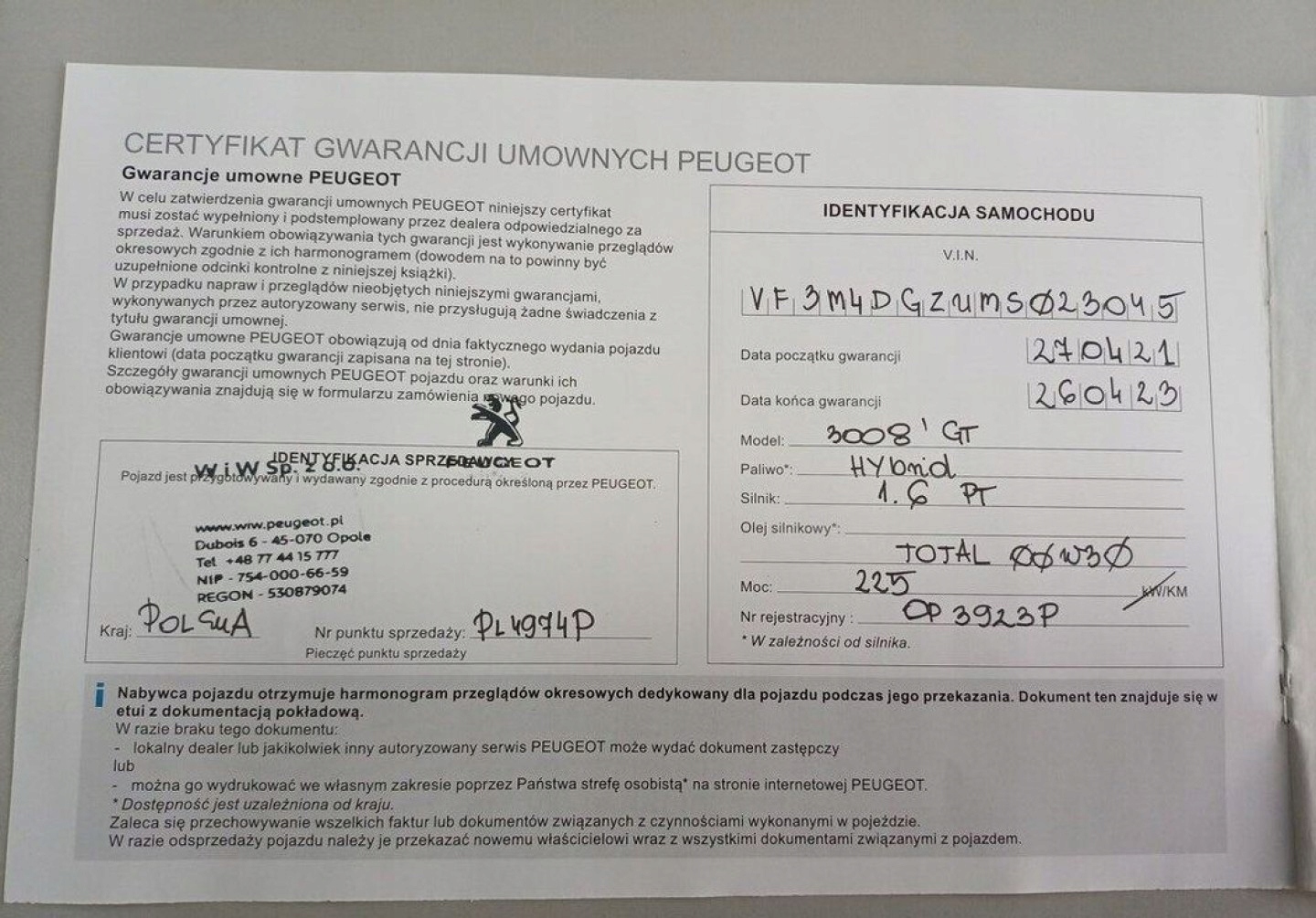 Peugeot 3008 19 1.6 HYbrid GT Line 225 KM FV23 1.6 Benzyna 225KM