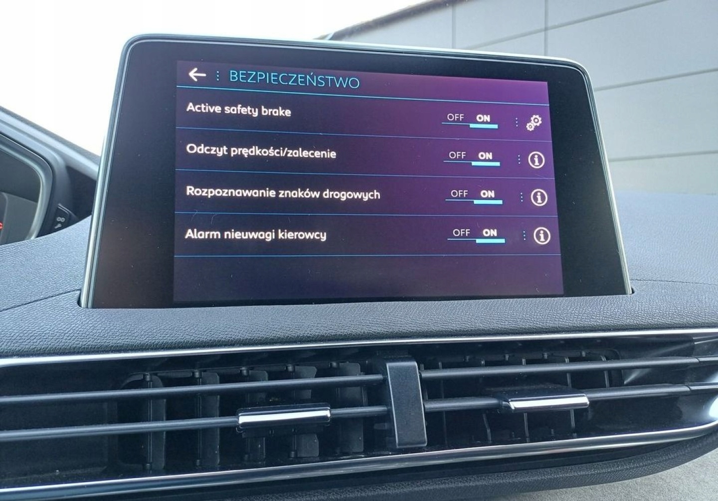 ABS, ASR (kontrola trakcji), Czujniki parkowania tylne, ESP (stabilizacja toru jazdy), Isofix, Kamera cofania, Poduszka powietrzna pasażera, Poduszki boczne przednie, Elektryczne szyby przednie, Elektryczne szyby tylne, Elektrycznie ustawiane lusterka, Podgrzewane lusterka boczne, Przyciemniane szyby, Wspomaganie kierownicy, Bluetooth, Gniazdo USB, Radio fabryczne, Elektrochromatyczne lusterka boczne, Ogranicznik prędkości, System Start-Stop, Tempomat aktywny