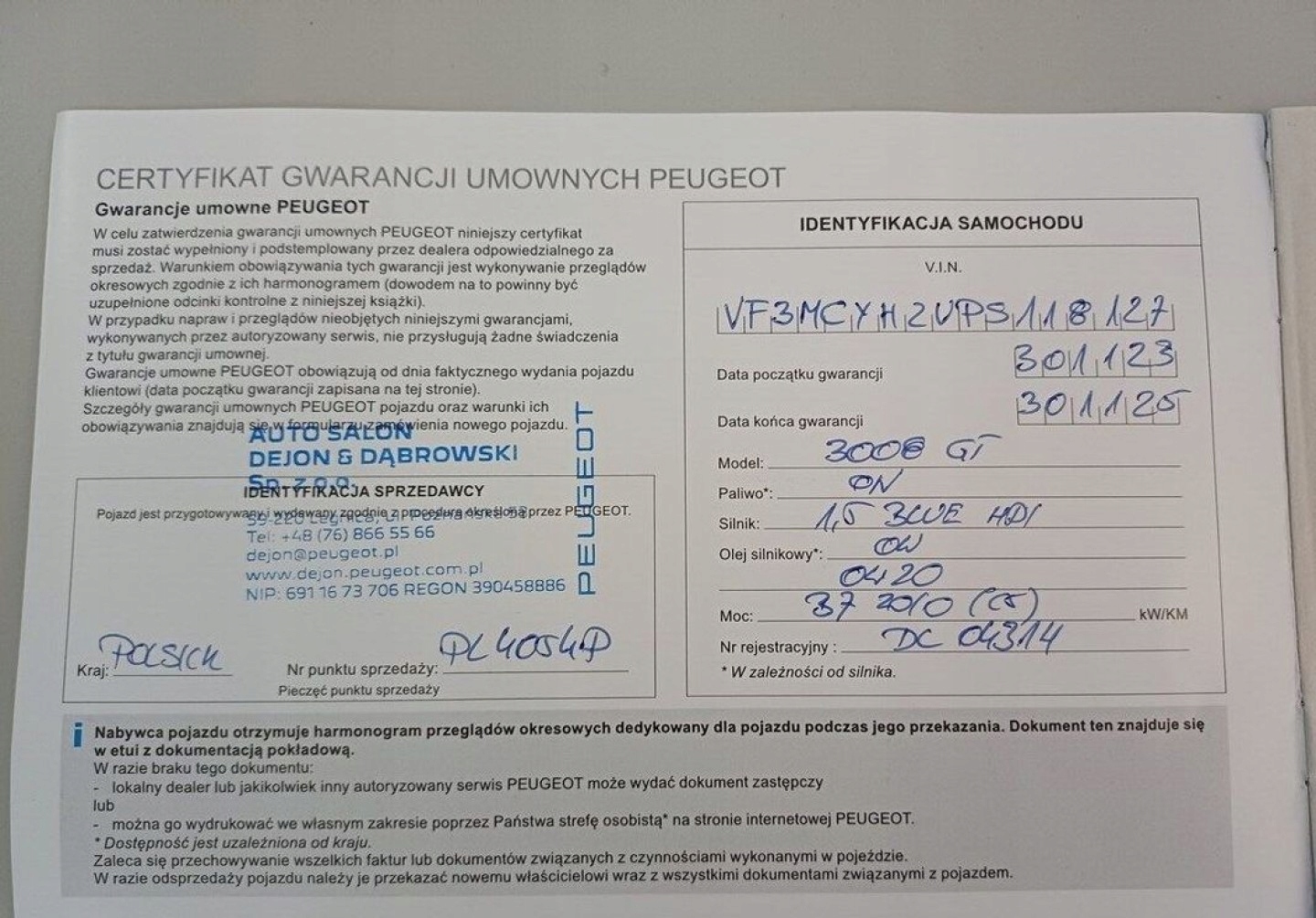 Peugeot 3008 245 GT PACK 1.5 BlueHDi 130 KM AUTOMAT I wl. GWARANCJA FV23