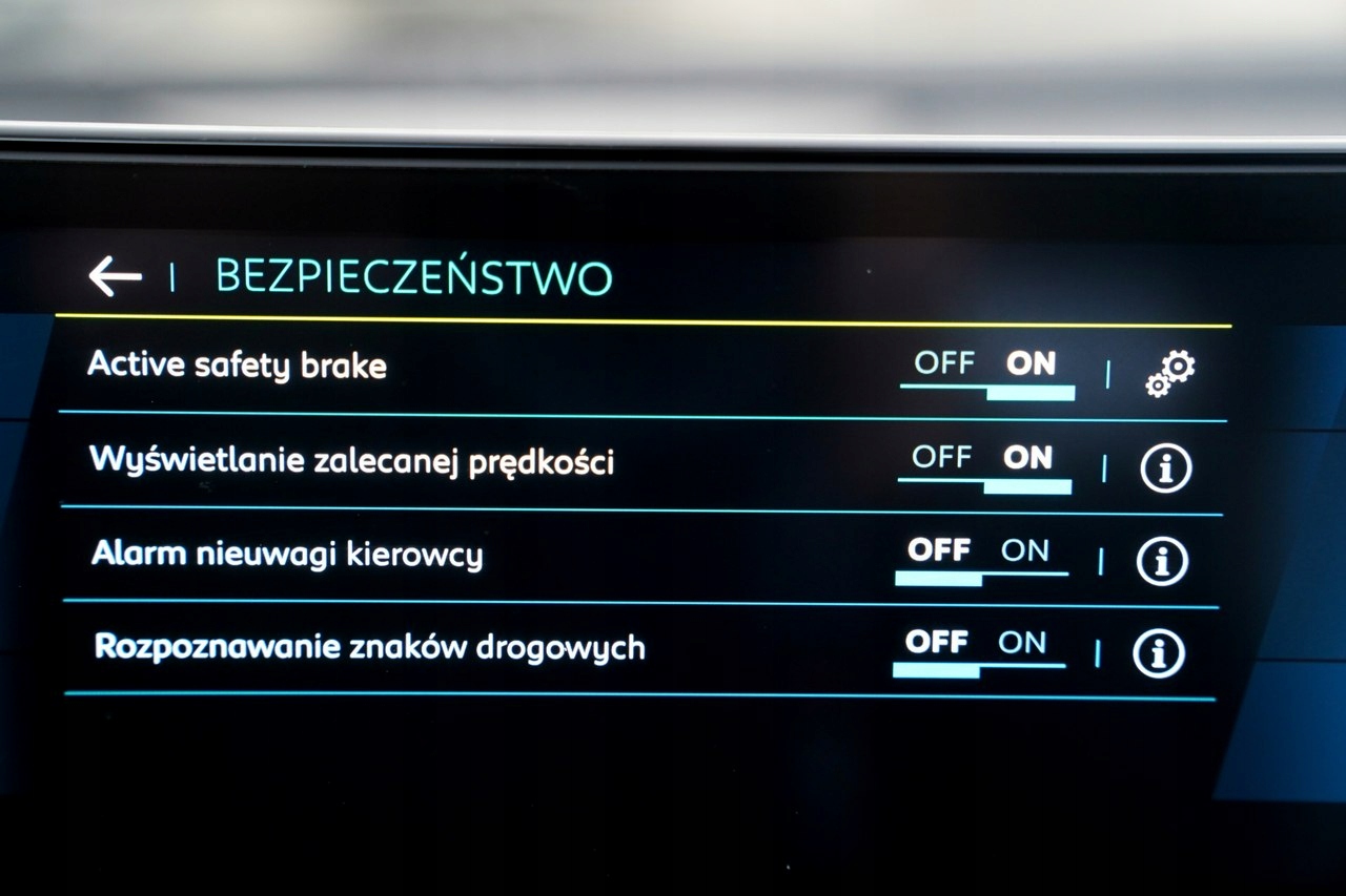 ABS, Alarm, ASR (kontrola trakcji), Czujnik deszczu, Czujniki parkowania tylne, Immobilizer, Asystent parkowania, Asystent pasa ruchu, Czujnik martwego pola, Czujniki parkowania przednie, Kurtyny powietrzne, Poduszki boczne przednie, Poduszka powietrzna chroniąca kolana, Poduszka powietrzna kierowcy, Poduszka powietrzna pasażera, Poduszki boczne tylne, ESP (stabilizacja toru jazdy), Isofix, Kamera cofania, Elektryczne szyby przednie, Elektryczne szyby tylne, Elektrycznie ustawiane lusterka, Podgrzewane przednie siedzenia, Przyciemniane szyby, Wielofunkcyjna kierownica, Wspomaganie kierownicy, Elektrycznie ustawiane fotele, Ogrzewanie postojowe, Podgrzewana przednia szyba, Podgrzewane lusterka boczne, Zawieszenie adaptacyjne, Tapicerka ciemna, Tapicerka skórzana, Bluetooth, Gniazdo AUX, Gniazdo SD, Gniazdo USB, CD, MP3, Radio fabryczne, Nawigacja GPS, Alufelgi, Centralny zamek, Komputer pokładowy, Relingi dachowe, Tempomat, Elektrochromatyczne lusterka boczne, Elektrochromatyczne lusterko wsteczne, Ogranicznik prędkości, System Start-Stop, Hak, Łopatki zmiany biegów, Tempomat aktywny