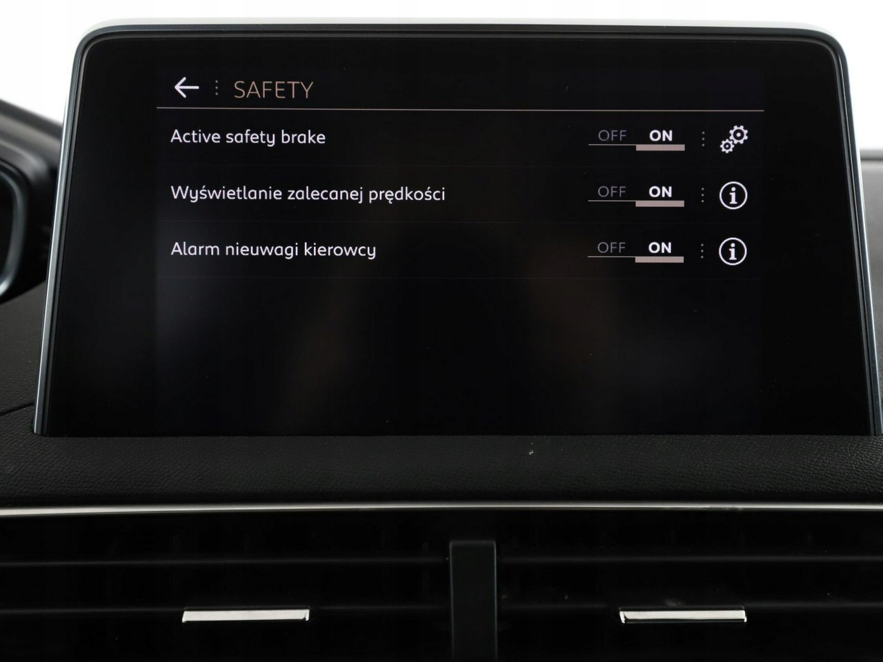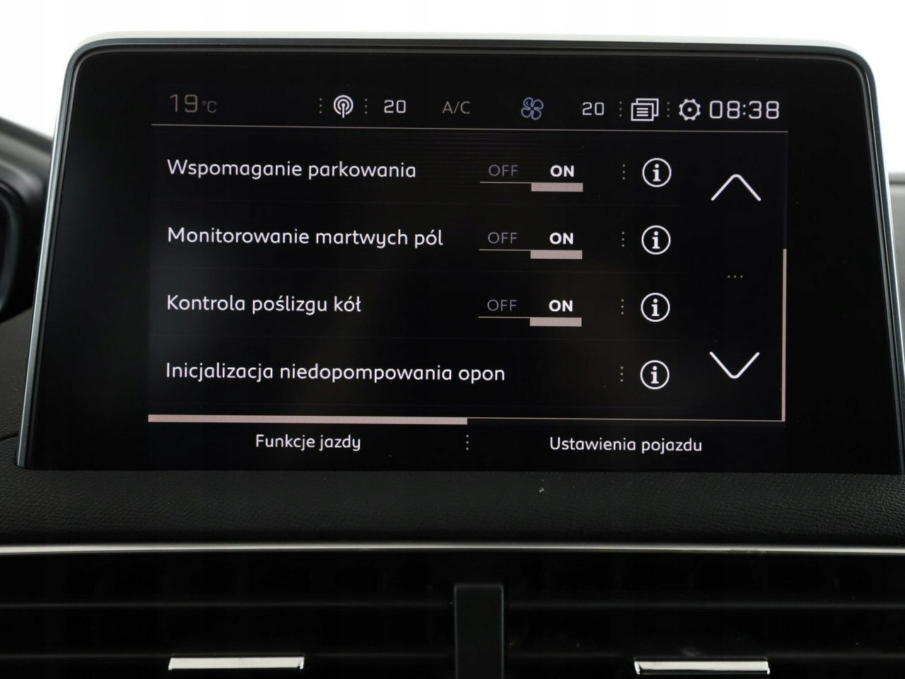 ABS, ASR (kontrola trakcji), Czujnik deszczu, Czujniki parkowania tylne, Immobilizer, Asystent parkowania, Asystent pasa ruchu, Czujnik martwego pola, Czujniki parkowania przednie, Poduszka powietrzna kierowcy, Poduszka powietrzna pasażera, Poduszki boczne przednie, ESP (stabilizacja toru jazdy), Isofix, Kamera cofania, Elektryczne szyby przednie, Elektryczne szyby tylne, Elektrycznie ustawiane lusterka, Przyciemniane szyby, Wielofunkcyjna kierownica, Wspomaganie kierownicy, Bluetooth, Gniazdo USB, Radio fabryczne, Nawigacja GPS, Centralny zamek, Komputer pokładowy, Relingi dachowe, Tempomat, System Start-Stop, Tempomat aktywny