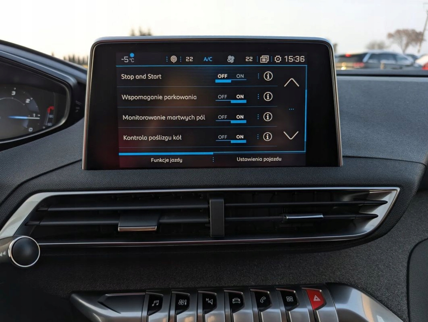 ABS, ASR (kontrola trakcji), Czujnik deszczu, Czujniki parkowania przednie, Czujniki parkowania tylne, Czujnik zmierzchu, ESP (stabilizacja toru jazdy), Isofix, Kurtyny powietrzne, Poduszka powietrzna kierowcy, Poduszka powietrzna pasażera, Poduszki boczne przednie, Elektryczne szyby przednie, Elektryczne szyby tylne, Elektrycznie ustawiane lusterka, Podgrzewane lusterka boczne, Przyciemniane szyby, Tapicerka tekstylna, Wielofunkcyjna kierownica, Wspomaganie kierownicy, Skórzana kierownica, Bluetooth, Gniazdo USB, Radio fabryczne, Alufelgi, Ogranicznik prędkości, System Start-Stop, Tempomat