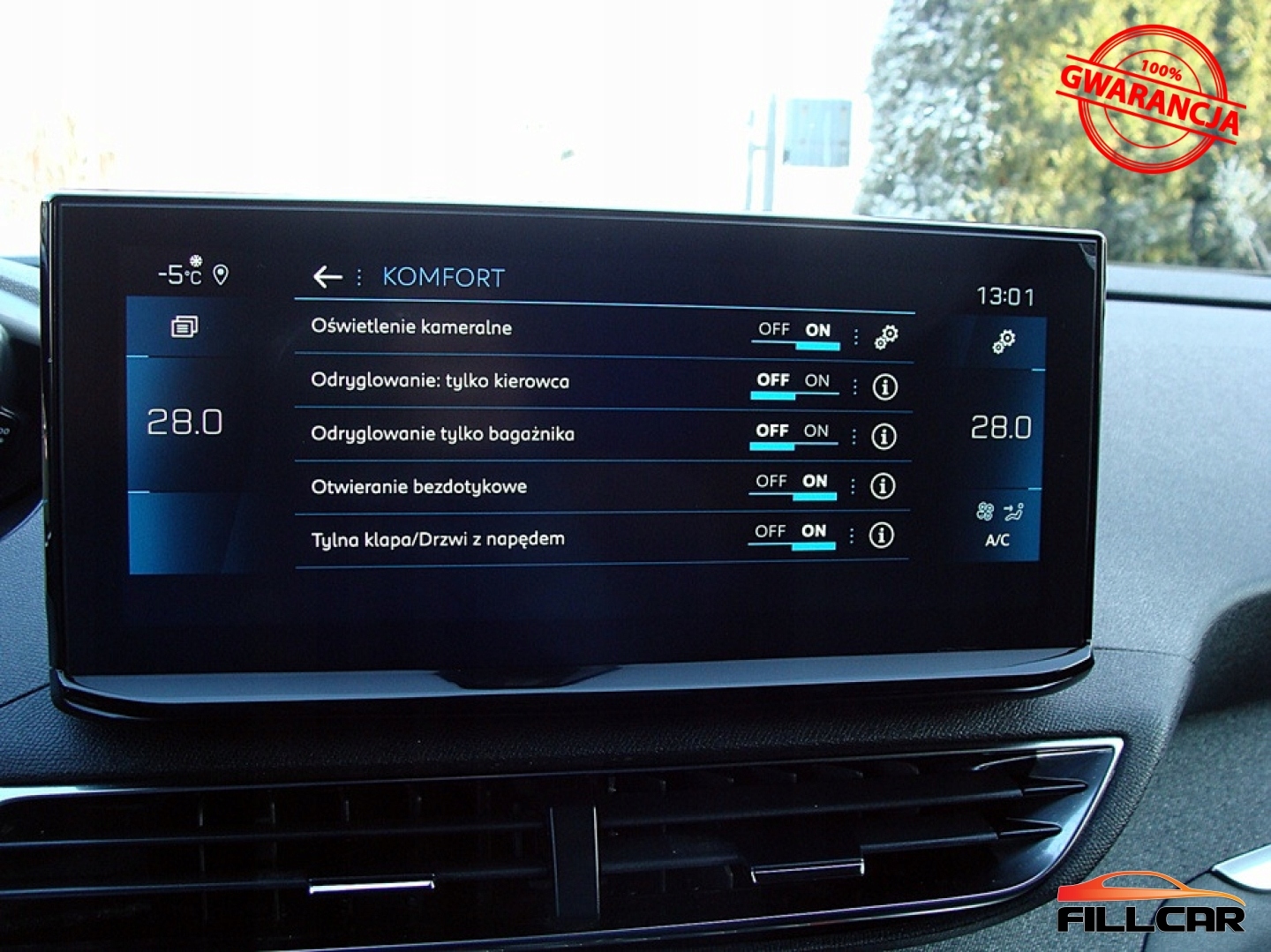 ABS, ASR (kontrola trakcji), Asystent pasa ruchu, Czujnik deszczu, Czujniki parkowania przednie, Czujniki parkowania tylne, Czujnik martwego pola, Czujnik zmierzchu, ESP (stabilizacja toru jazdy), Isofix, Kamera cofania, Kurtyny powietrzne, Poduszka powietrzna chroniąca kolana, Poduszka powietrzna kierowcy, Poduszka powietrzna pasażera, Poduszki boczne przednie, Elektryczne szyby przednie, Elektryczne szyby tylne, Elektrycznie ustawiane lusterka, Podgrzewane lusterka boczne, Przyciemniane szyby, Wielofunkcyjna kierownica, Wspomaganie kierownicy, Skórzana kierownica, Bluetooth, Gniazdo USB, Nawigacja GPS, Radio fabryczne, Alufelgi, Bezkluczykowy dostęp, Elektrochromatyczne lusterka boczne, Ogranicznik prędkości, System Start-Stop, Tempomat