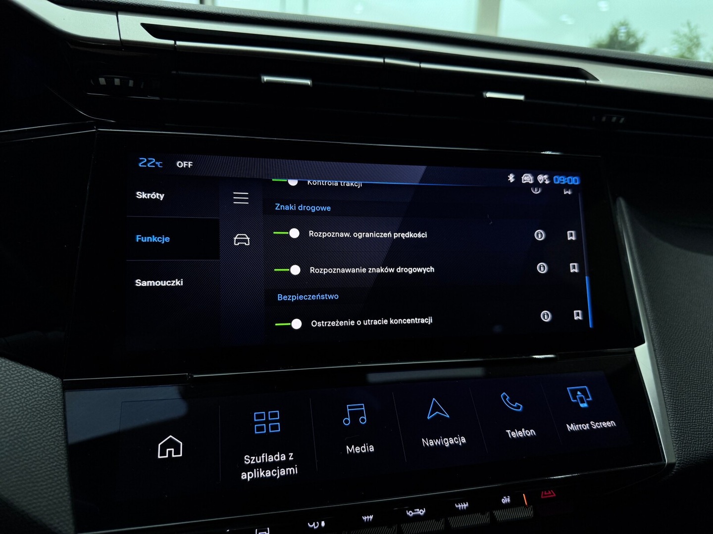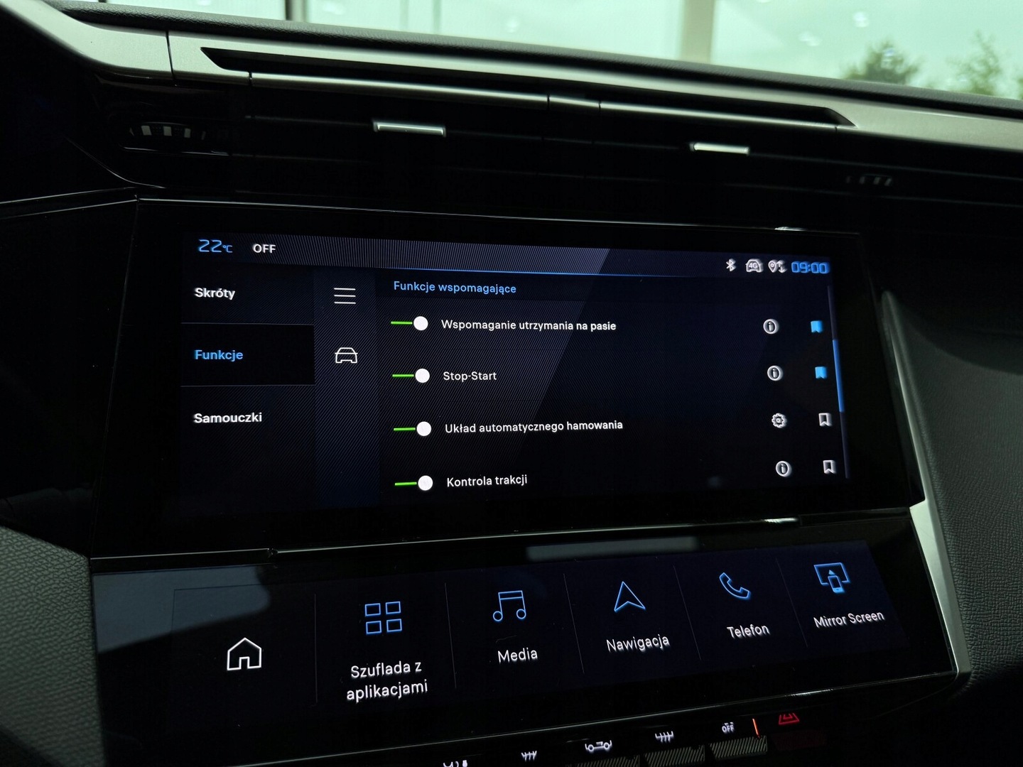 Czujnik deszczu, Czujnik martwego pola, Czujnik zmierzchu, Kamera cofania, Czujniki parkowania przednie, Czujniki parkowania tylne, ABS, ESP (stabilizacja toru jazdy), Isofix, Poduszka powietrzna kierowcy, Poduszka powietrzna pasażera, Elektryczne szyby przednie, Elektryczne szyby tylne, Podgrzewana przednia szyba, Podgrzewane przednie siedzenia, Przyciemniane szyby, Elektrycznie ustawiane lusterka, Wspomaganie kierownicy, Bluetooth, Gniazdo USB, Radio niefabryczne, Nawigacja GPS, Łopatki zmiany biegów, Ogranicznik prędkości, System Start-Stop, Tempomat, Tempomat aktywny, Alufelgi