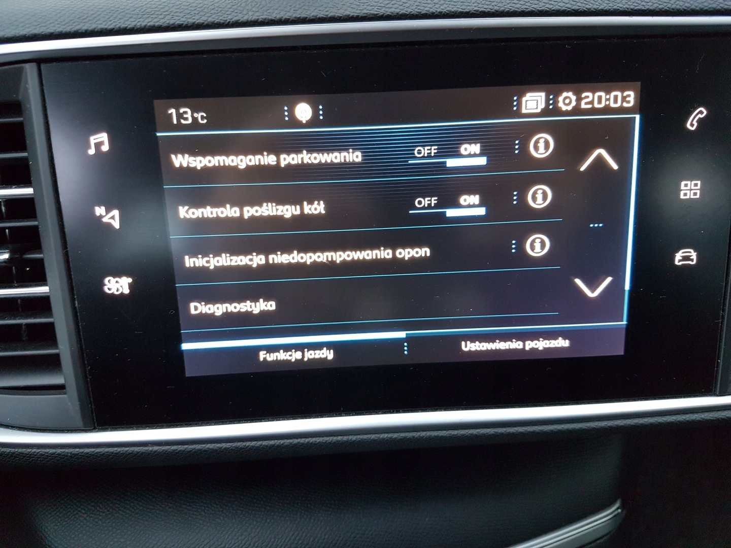 ABS, ASR (kontrola trakcji), Czujniki parkowania tylne, ESP (stabilizacja toru jazdy), Immobilizer, Kurtyny powietrzne, Poduszka powietrzna kierowcy, Poduszka powietrzna pasażera, Elektryczne szyby przednie, Elektryczne szyby tylne, Podgrzewana tylna szyba, Podgrzewane lusterka boczne, Podgrzewane przednie siedzenia, Skórzana kierownica, Tapicerka ciemna, Tapicerka tekstylna, Wielofunkcyjna kierownica, Wspomaganie kierownicy, Bluetooth, Nawigacja GPS, Radio fabryczne, Alufelgi, Centralny zamek, Komputer pokładowy, Otwieranie pilotem, System Start-Stop