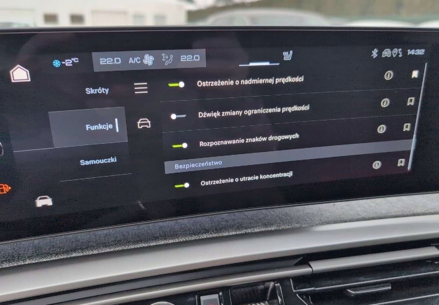 ABS, Czujniki parkowania tylne, Czujnik martwego pola, ESP (stabilizacja toru jazdy), Isofix, Kamera cofania, Poduszka powietrzna pasażera, Poduszki boczne przednie, Elektryczne szyby przednie, Elektryczne szyby tylne, Elektrycznie ustawiane lusterka, Podgrzewane przednie siedzenia, Podgrzewane tylne siedzenia, Przyciemniane szyby, Tapicerka skórzana, Wspomaganie kierownicy, Bluetooth, Gniazdo USB, Nawigacja GPS, Radio fabryczne, Elektrochromatyczne lusterka boczne, Ogranicznik prędkości, System Start-Stop, Tempomat aktywny