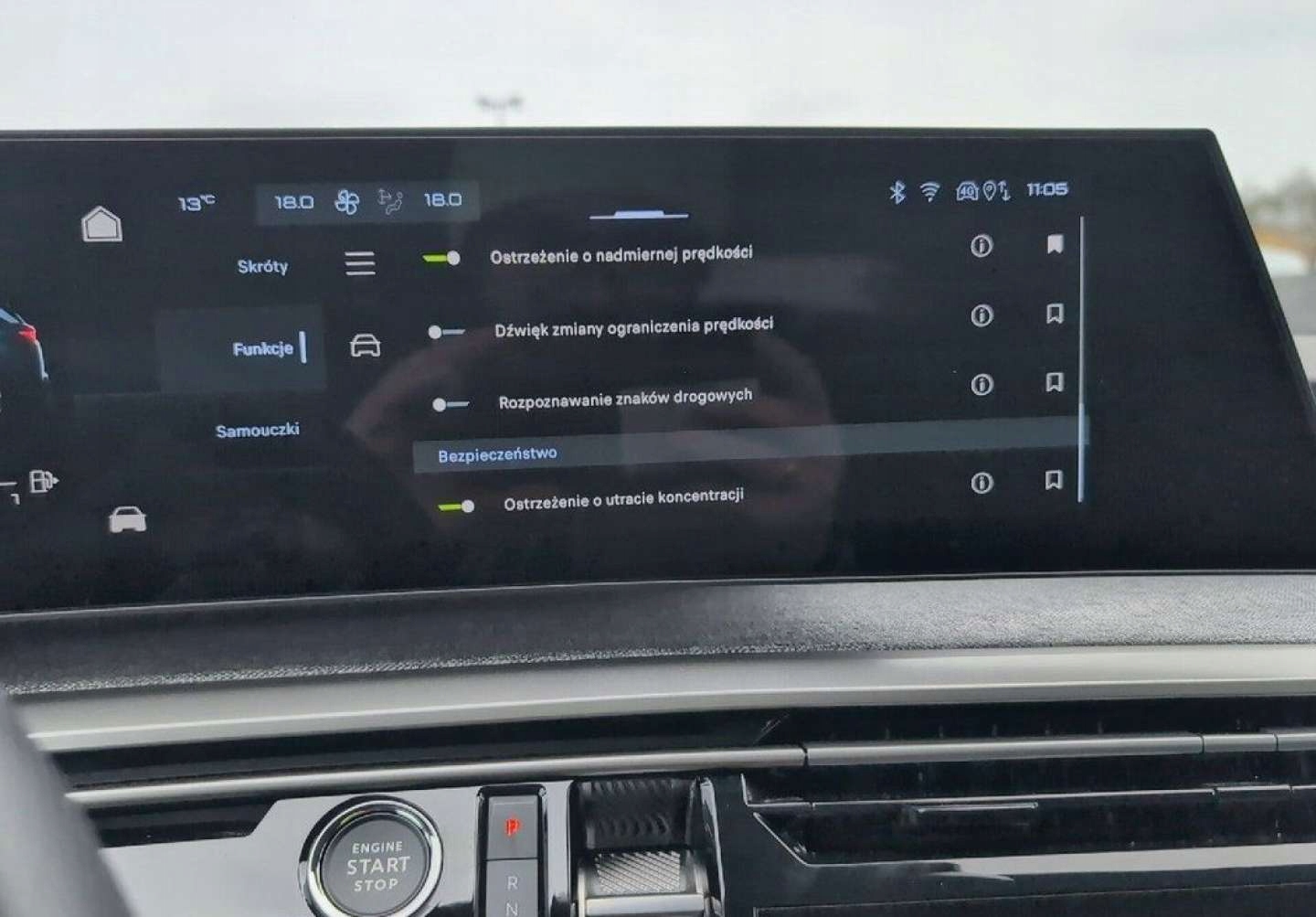 ABS, ASR (kontrola trakcji), Czujniki parkowania tylne, ESP (stabilizacja toru jazdy), Isofix, Kamera cofania, Poduszka powietrzna pasażera, Poduszki boczne przednie, Elektryczne szyby przednie, Elektryczne szyby tylne, Elektrycznie ustawiane lusterka, Podgrzewana przednia szyba, Podgrzewane lusterka boczne, Podgrzewane przednie siedzenia, Podgrzewane tylne siedzenia, Przyciemniane szyby, Tapicerka skórzana, Wspomaganie kierownicy, Bluetooth, Gniazdo USB, Nawigacja GPS, Radio fabryczne, Elektrochromatyczne lusterka boczne, Ogranicznik prędkości, System Start-Stop, Tempomat aktywny