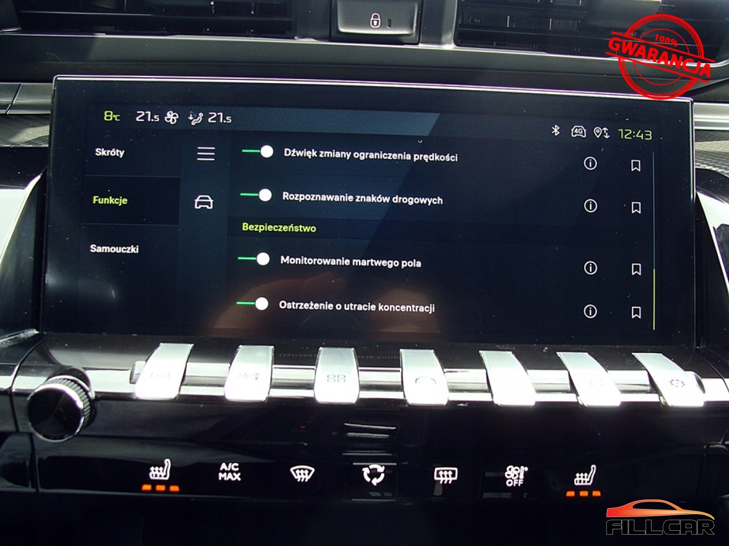 ABS, ASR (kontrola trakcji), Asystent pasa ruchu, Czujnik deszczu, Czujniki parkowania przednie, Czujniki parkowania tylne, Czujnik martwego pola, Czujnik zmierzchu, ESP (stabilizacja toru jazdy), Isofix, Kamera cofania, Kurtyny powietrzne, Poduszka powietrzna chroniąca kolana, Poduszka powietrzna kierowcy, Poduszka powietrzna pasażera, Poduszki boczne przednie, Elektryczne szyby przednie, Elektryczne szyby tylne, Elektrycznie ustawiane lusterka, Podgrzewane lusterka boczne, Podgrzewane przednie siedzenia, Podgrzewane tylne siedzenia, Przyciemniane szyby, Wielofunkcyjna kierownica, Wspomaganie kierownicy, Skórzana kierownica, Bluetooth, Gniazdo USB, Nawigacja GPS, Radio fabryczne, Alufelgi, Bezkluczykowy dostęp, Elektrochromatyczne lusterka boczne, Łopatki zmiany biegów, Ogranicznik prędkości, System Start-Stop, Tempomat aktywny