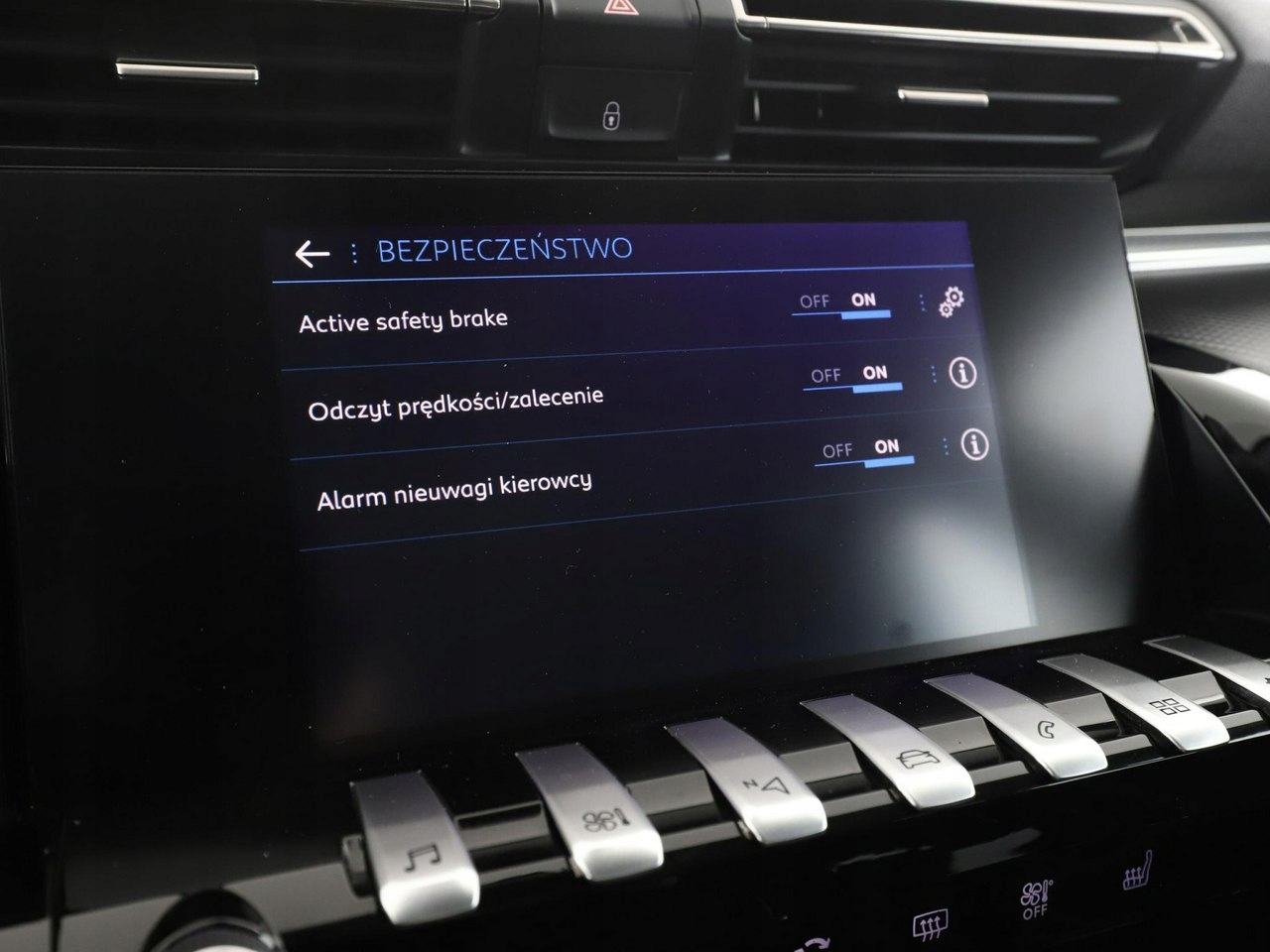 ABS, ASR (kontrola trakcji), Czujnik deszczu, Czujniki parkowania tylne, Immobilizer, Asystent pasa ruchu, Czujniki parkowania przednie, Poduszka powietrzna kierowcy, Poduszka powietrzna pasażera, Poduszki boczne przednie, ESP (stabilizacja toru jazdy), Isofix, Kamera cofania, Elektryczne szyby przednie, Elektryczne szyby tylne, Elektrycznie ustawiane lusterka, Podgrzewane przednie siedzenia, Wielofunkcyjna kierownica, Wspomaganie kierownicy, Tapicerka tekstylna, Gniazdo USB, Radio fabryczne, Centralny zamek, Komputer pokładowy, Relingi dachowe, Tempomat, System Start-Stop, Łopatki zmiany biegów