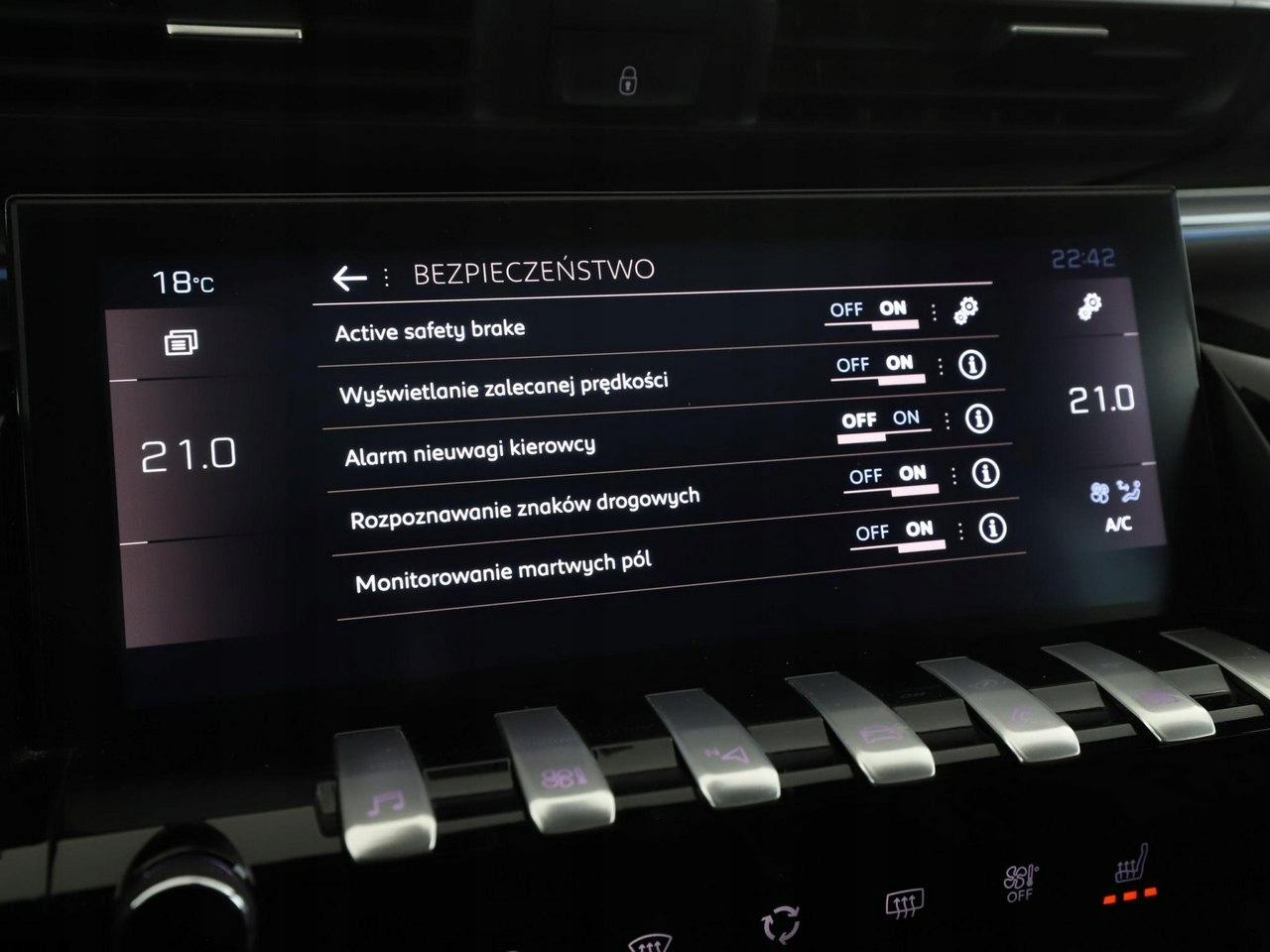 ABS, ASR (kontrola trakcji), Czujnik deszczu, Czujniki parkowania tylne, Asystent pasa ruchu, Czujnik martwego pola, Czujniki parkowania przednie, Poduszka powietrzna kierowcy, Poduszka powietrzna pasażera, Poduszki boczne przednie, ESP (stabilizacja toru jazdy), Isofix, Kamera cofania, Elektryczne szyby przednie, Elektryczne szyby tylne, Elektrycznie ustawiane lusterka, Podgrzewane przednie siedzenia, Przyciemniane szyby, Wielofunkcyjna kierownica, Wspomaganie kierownicy, Elektrycznie ustawiane fotele, Podgrzewana przednia szyba, Tapicerka skórzana, Gniazdo USB, Radio fabryczne, Nawigacja GPS, Bezkluczykowy dostęp, Centralny zamek, Komputer pokładowy, Tempomat, Dach panoramiczny, System Start-Stop, Łopatki zmiany biegów, Tempomat aktywny
