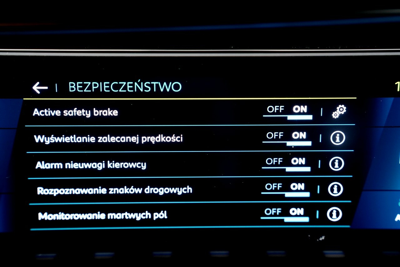 ABS, ASR (kontrola trakcji), Czujnik deszczu, Czujniki parkowania tylne, Immobilizer, Asystent parkowania, Asystent pasa ruchu, Czujnik martwego pola, Czujniki parkowania przednie, Kurtyny powietrzne, Poduszki boczne przednie, Poduszka powietrzna chroniąca kolana, Poduszka powietrzna kierowcy, Poduszka powietrzna pasażera, Poduszki boczne tylne, ESP (stabilizacja toru jazdy), Isofix, Kamera cofania, Elektryczne szyby przednie, Elektryczne szyby tylne, Elektrycznie ustawiane lusterka, Podgrzewane przednie siedzenia, Przyciemniane szyby, Wielofunkcyjna kierownica, Wspomaganie kierownicy, Elektrycznie ustawiane fotele, Podgrzewane lusterka boczne, Zawieszenie adaptacyjne, Tapicerka ciemna, Tapicerka skórzana, Bluetooth, Gniazdo AUX, Gniazdo SD, Gniazdo USB, CD, MP3, Radio fabryczne, Nawigacja GPS, Alufelgi, Bezkluczykowy dostęp, Centralny zamek, Komputer pokładowy, Relingi dachowe, Tempomat, Dach panoramiczny, Elektrochromatyczne lusterka boczne, Elektrochromatyczne lusterko wsteczne, Ogranicznik prędkości, System Start-Stop, Łopatki zmiany biegów, Tempomat aktywny