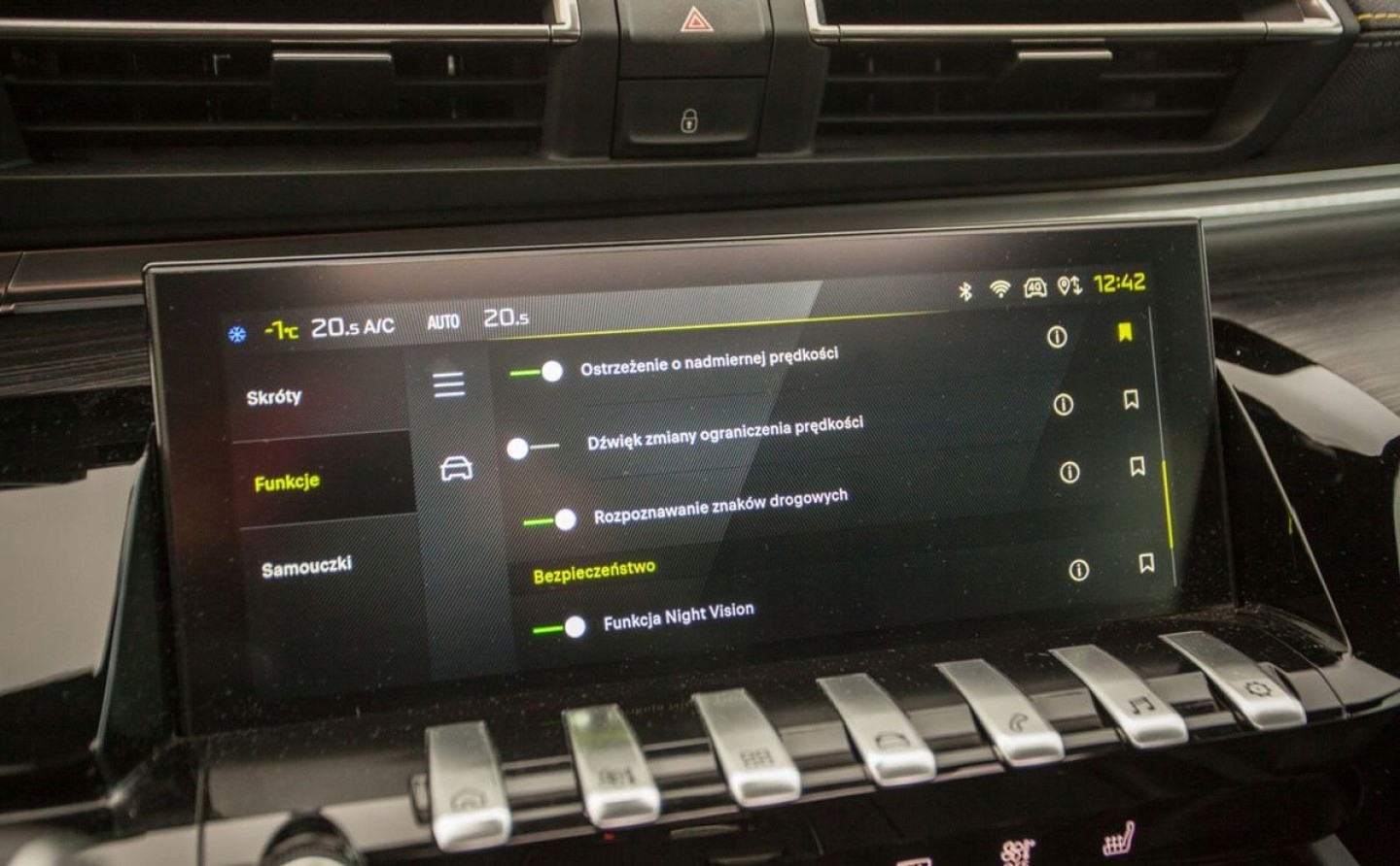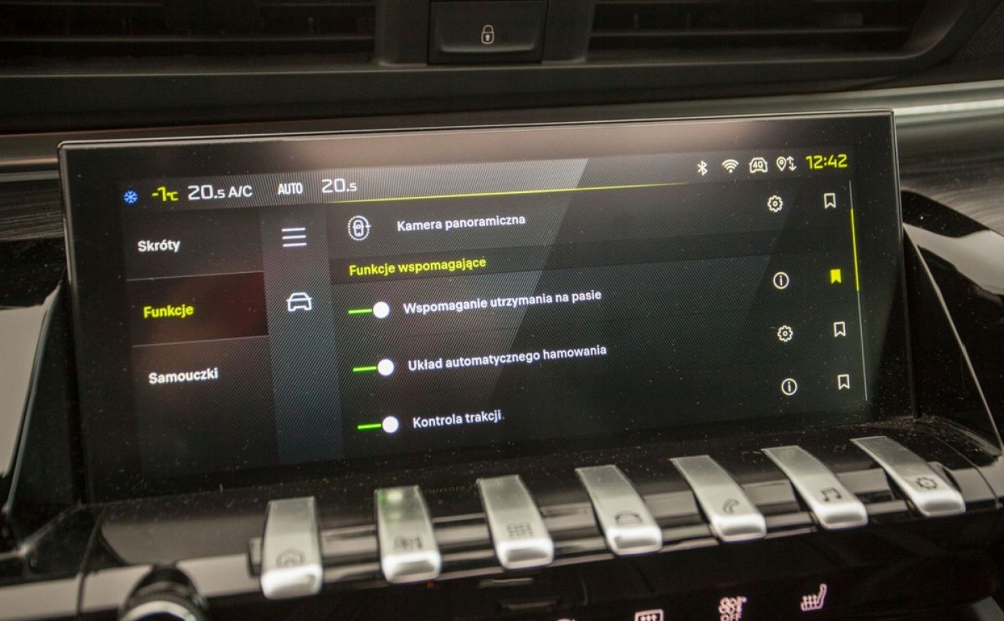 ABS, ASR (kontrola trakcji), Czujniki parkowania tylne, Czujnik martwego pola, ESP (stabilizacja toru jazdy), Isofix, Kamera cofania, Poduszka powietrzna pasażera, Poduszki boczne przednie, Elektryczne szyby przednie, Elektryczne szyby tylne, Elektrycznie ustawiane fotele, Elektrycznie ustawiane lusterka, Podgrzewana przednia szyba, Podgrzewane lusterka boczne, Podgrzewane przednie siedzenia, Podgrzewane tylne siedzenia, Przyciemniane szyby, Tapicerka skórzana, Wspomaganie kierownicy, Bluetooth, Gniazdo USB, Nawigacja GPS, Radio fabryczne, Elektrochromatyczne lusterka boczne, Ogranicznik prędkości, System Start-Stop, Tempomat aktywny