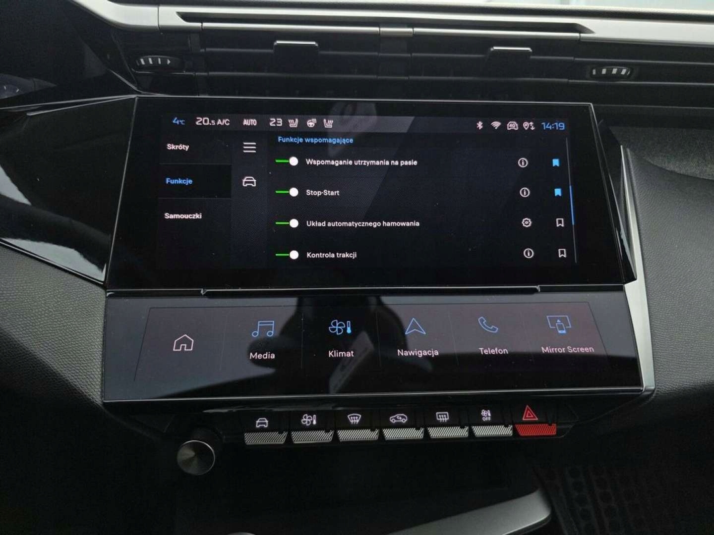 ABS, Asystent pasa ruchu, Czujnik deszczu, Czujniki parkowania przednie, Czujniki parkowania tylne, Czujnik zmierzchu, ESP (stabilizacja toru jazdy), Isofix, Kamera cofania, Poduszka powietrzna kierowcy, Poduszki boczne przednie, Poduszki boczne tylne, Elektryczne szyby przednie, Elektryczne szyby tylne, Elektrycznie ustawiane lusterka, Podgrzewane przednie siedzenia, Podgrzewane tylne siedzenia, Przyciemniane szyby, Tapicerka tekstylna, Wielofunkcyjna kierownica, Wspomaganie kierownicy, Skórzana kierownica, Bluetooth, Gniazdo USB, Nawigacja GPS, Radio fabryczne, Bezkluczykowy dostęp, Elektrochromatyczne lusterka boczne, Łopatki zmiany biegów, Ogranicznik prędkości, System Start-Stop, Tempomat aktywny