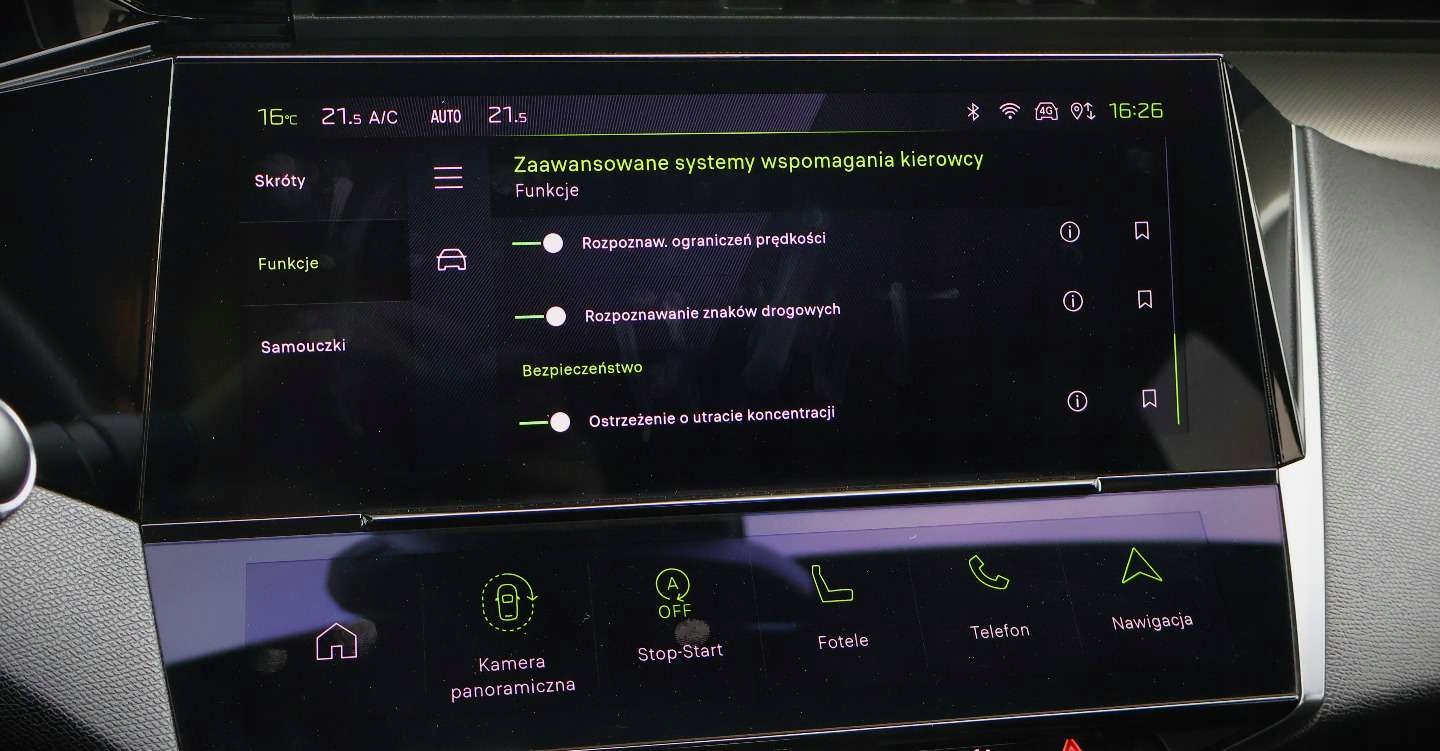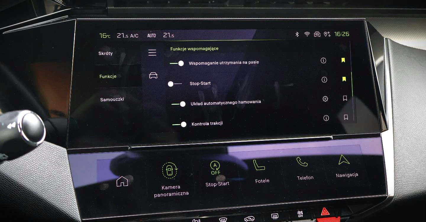 ABS, Alarm, ASR (kontrola trakcji), Czujnik deszczu, Czujniki parkowania przednie, Czujniki parkowania tylne, Czujnik martwego pola, Czujnik zmierzchu, ESP (stabilizacja toru jazdy), Isofix, Kamera cofania, Kurtyny powietrzne, Poduszka powietrzna chroniąca kolana, Poduszka powietrzna kierowcy, Poduszka powietrzna pasażera, Poduszki boczne przednie, Elektryczne szyby przednie, Elektryczne szyby tylne, Elektrycznie ustawiane lusterka, Podgrzewane lusterka boczne, Podgrzewane przednie siedzenia, Podgrzewane tylne siedzenia, Przyciemniane szyby, Wielofunkcyjna kierownica, Wspomaganie kierownicy, Skórzana kierownica, Bluetooth, Gniazdo USB, Nawigacja GPS, Radio fabryczne, Alufelgi, Bezkluczykowy dostęp, Elektrochromatyczne lusterka boczne, Łopatki zmiany biegów, System Start-Stop