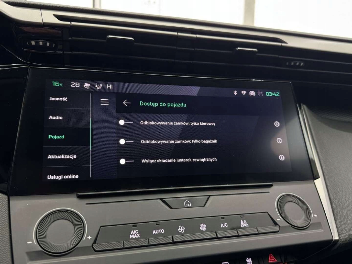 ABS, ASR (kontrola trakcji), Czujnik deszczu, Czujniki parkowania tylne, Czujnik zmierzchu, ESP (stabilizacja toru jazdy), Isofix, Kurtyny powietrzne, Poduszka powietrzna kierowcy, Poduszka powietrzna pasażera, Poduszki boczne przednie, Elektryczne szyby przednie, Elektryczne szyby tylne, Elektrycznie ustawiane lusterka, Tapicerka tekstylna, Wielofunkcyjna kierownica, Wspomaganie kierownicy, Skórzana kierownica, Bluetooth, Gniazdo USB, Radio fabryczne, Alufelgi, Bezkluczykowy dostęp, Elektrochromatyczne lusterka boczne, Ogranicznik prędkości, System Start-Stop, Tempomat