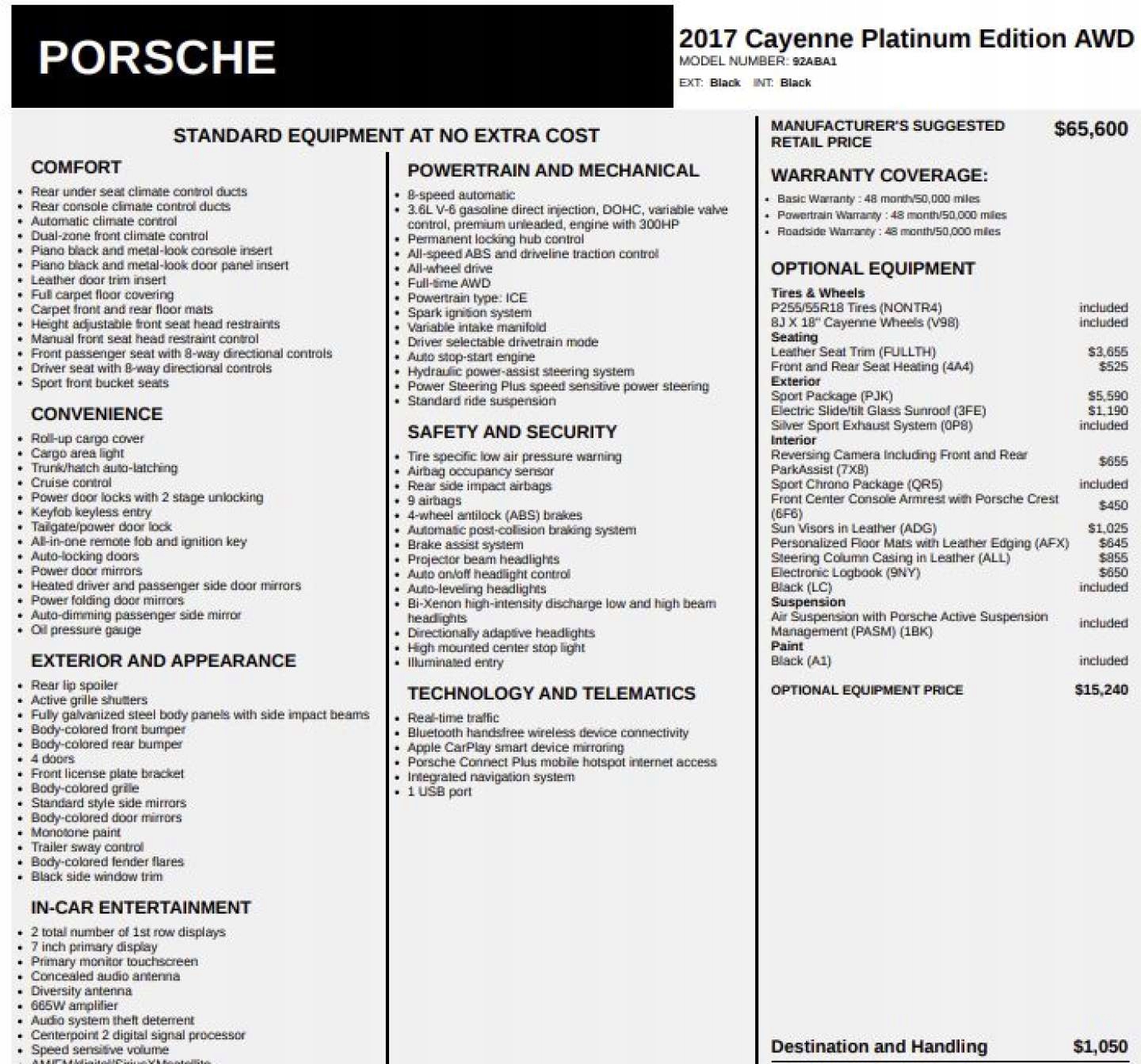 Porsche Cayenne 2017 Porsche Cayenne PLATINIUM 3.6 - KUPIONY w transporcie