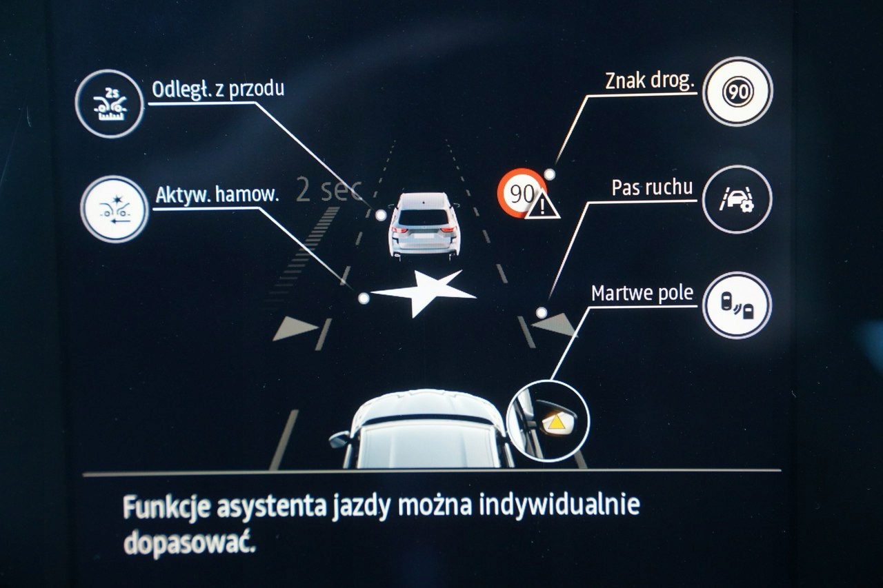 ABS, Alarm, ASR (kontrola trakcji), Czujnik deszczu, Czujniki parkowania tylne, Immobilizer, Asystent parkowania, Asystent pasa ruchu, Czujnik martwego pola, Czujniki parkowania przednie, Kurtyny powietrzne, Poduszki boczne przednie, Poduszka powietrzna chroniąca kolana, Poduszka powietrzna kierowcy, Poduszka powietrzna pasażera, Poduszki boczne tylne, Światła xenonowe, ESP (stabilizacja toru jazdy), Isofix, Kamera cofania, Elektryczne szyby przednie, Elektryczne szyby tylne, Elektrycznie ustawiane lusterka, Podgrzewane przednie siedzenia, Przyciemniane szyby, Wielofunkcyjna kierownica, Wspomaganie kierownicy, Elektrycznie ustawiane fotele, Podgrzewane lusterka boczne, Tapicerka ciemna, Tapicerka skórzana, Bluetooth, Gniazdo AUX, Odtwarzacz DVD, CD, Zmieniarka CD, Gniazdo SD, Gniazdo USB, MP3, Radio fabryczne, Nawigacja GPS, Alufelgi, Centralny zamek, Komputer pokładowy, Relingi dachowe, Tempomat, Elektrochromatyczne lusterka boczne, Elektrochromatyczne lusterko wsteczne, Ogranicznik prędkości, System Start-Stop, Tempomat aktywny