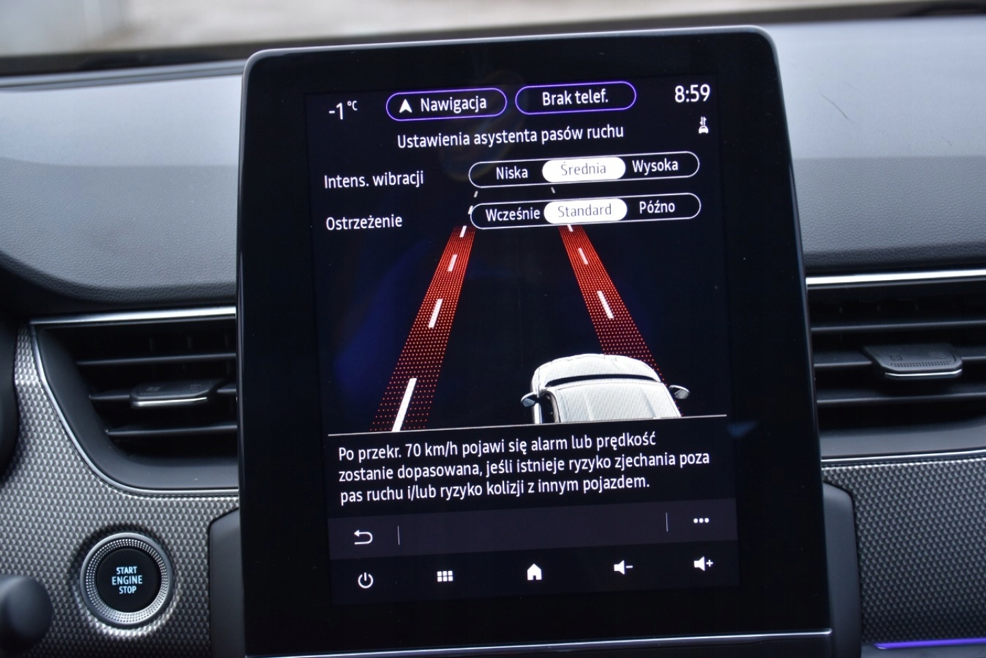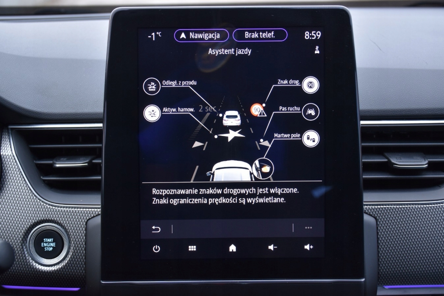 ABS, ASR (kontrola trakcji), Asystent pasa ruchu, Czujnik deszczu, Czujniki parkowania przednie, Czujniki parkowania tylne, Czujnik martwego pola, Czujnik zmierzchu, ESP (stabilizacja toru jazdy), Immobilizer, Isofix, Kamera cofania, Kurtyny powietrzne, Poduszka powietrzna chroniąca kolana, Poduszka powietrzna kierowcy, Poduszka powietrzna pasażera, Poduszki boczne przednie, Elektryczne szyby przednie, Elektryczne szyby tylne, Elektrycznie ustawiane lusterka, Podgrzewana tylna szyba, Podgrzewane lusterka boczne, Przyciemniane szyby, Skórzana kierownica, Tapicerka ciemna, Tapicerka skórzana, Wielofunkcyjna kierownica, Wspomaganie kierownicy, Zawieszenie adaptacyjne, Bluetooth, Gniazdo AUX, Gniazdo USB, Nawigacja GPS, Radio fabryczne, Alufelgi, Bezkluczykowy dostęp, Centralny zamek, Elektrochromatyczne lusterka boczne, Elektrochromatyczne lusterko wsteczne, Komputer pokładowy, Liczniki LCD, System Start-Stop, Tempomat