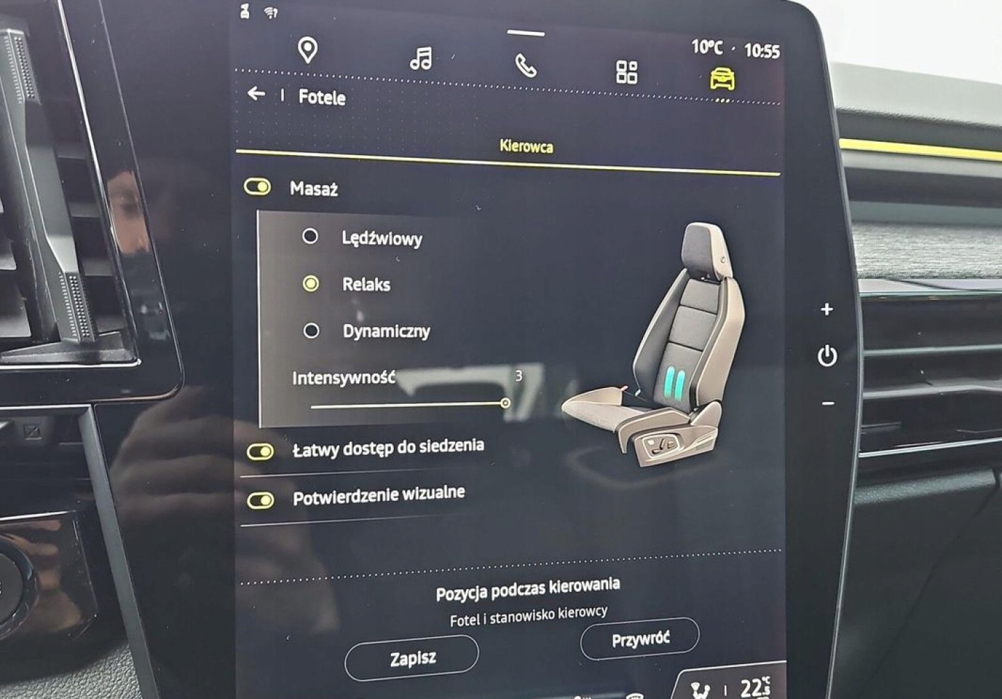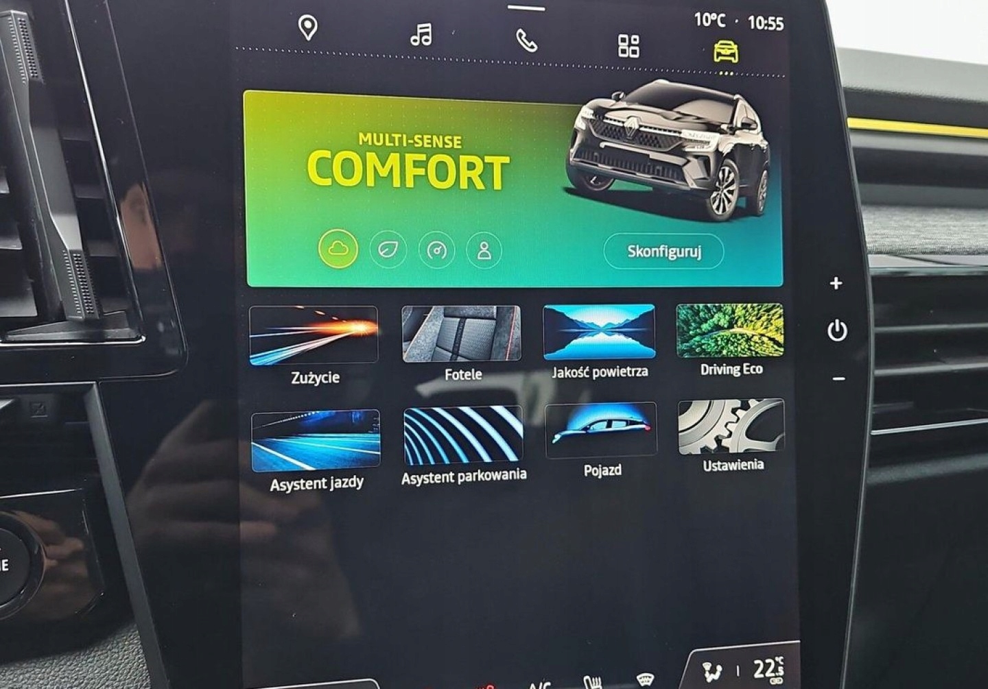 ABS, Asystent pasa ruchu, Czujnik deszczu, Czujniki parkowania przednie, Czujniki parkowania tylne, Isofix, Kamera cofania, Poduszka powietrzna kierowcy, Poduszki boczne przednie, Poduszki boczne tylne, Elektrycznie ustawiane lusterka, Podgrzewane lusterka boczne, Przyciemniane szyby, Tapicerka tekstylna, Wspomaganie kierownicy, Gniazdo USB, Radio fabryczne, Alufelgi, Elektrochromatyczne lusterka boczne