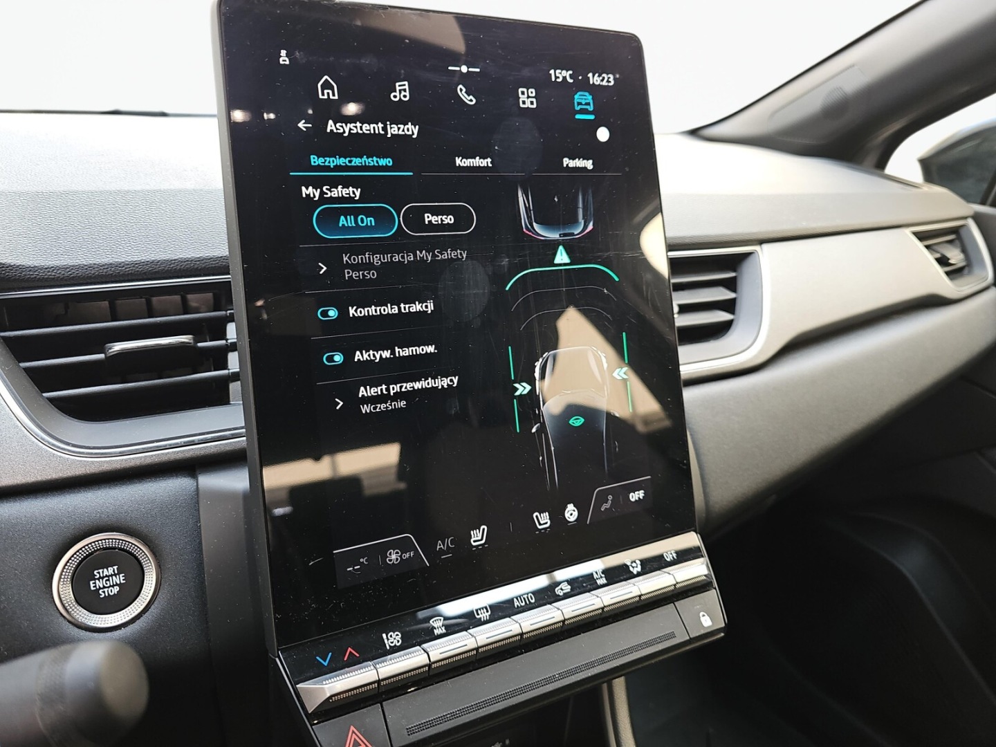ABS, Asystent pasa ruchu, Poduszki boczne przednie, Poduszki boczne tylne, Czujnik deszczu, Czujnik zmierzchu, Isofix, Kamera cofania, Czujniki parkowania tylne, Poduszka powietrzna kierowcy, Poduszka powietrzna pasażera, Elektrycznie ustawiane lusterka, Podgrzewane lusterka boczne, Przyciemniane szyby, Wspomaganie kierownicy, Gniazdo USB, Alufelgi