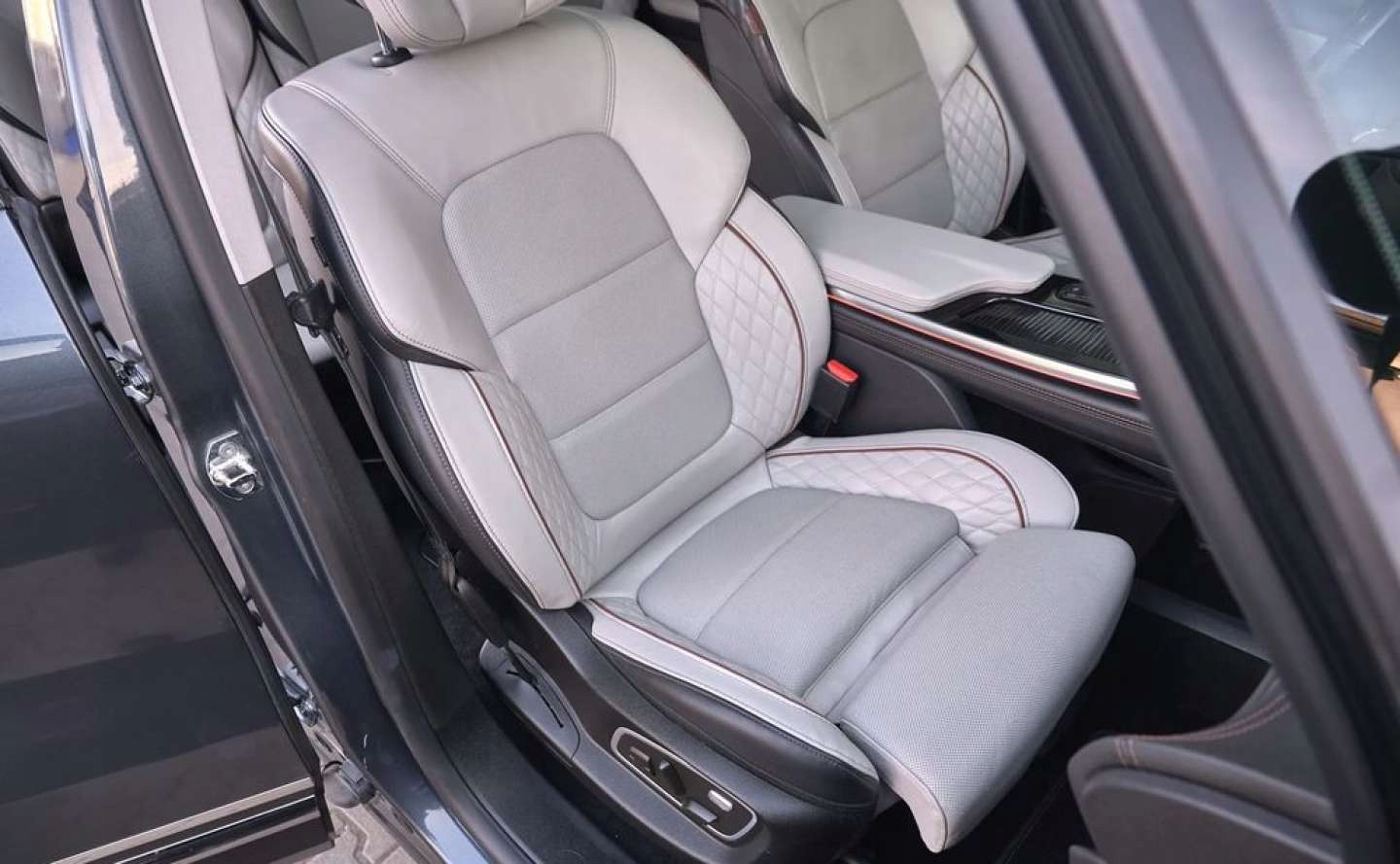 ABS, ASR (kontrola trakcji), Asystent pasa ruchu, Czujnik deszczu, Czujnik martwego pola, Czujnik zmierzchu, ESP (stabilizacja toru jazdy), HUD (wyświetlacz przezierny), Isofix, Kamera cofania, Kurtyny powietrzne, Poduszka powietrzna kierowcy, Poduszka powietrzna pasażera, Poduszki boczne przednie, Elektryczne szyby przednie, Elektryczne szyby tylne, Elektrycznie ustawiane fotele, Elektrycznie ustawiane lusterka, Podgrzewana kierownica, Podgrzewana przednia szyba, Podgrzewane lusterka boczne, Podgrzewane przednie siedzenia, Podgrzewane tylne siedzenia, Przyciemniane szyby, Tapicerka skórzana, Wentylowane fotele, Wielofunkcyjna kierownica, Wspomaganie kierownicy, Skórzana kierownica, Bluetooth, Gniazdo USB, Nawigacja GPS, Radio fabryczne, Alufelgi, Elektrochromatyczne lusterka boczne, Ogranicznik prędkości, Szyberdach