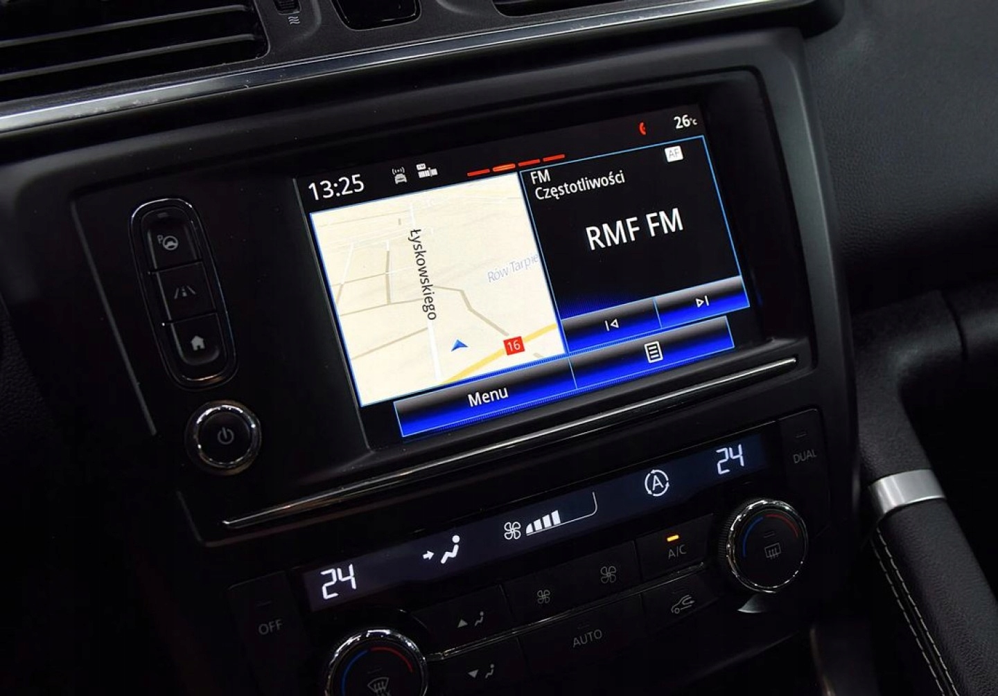 ABS, Asystent parkowania, Czujnik deszczu, Czujniki parkowania przednie, Czujniki parkowania tylne, Czujnik martwego pola, ESP (stabilizacja toru jazdy), Isofix, Kamera cofania, Kurtyny powietrzne, Poduszka powietrzna kierowcy, Poduszka powietrzna pasażera, Poduszki boczne przednie, Elektryczne szyby przednie, Elektryczne szyby tylne, Elektrycznie ustawiane lusterka, Podgrzewane lusterka boczne, Przyciemniane szyby, Wspomaganie kierownicy, Skórzana kierownica, Bluetooth, Gniazdo USB, Nawigacja GPS, Radio fabryczne, Alufelgi, Tempomat