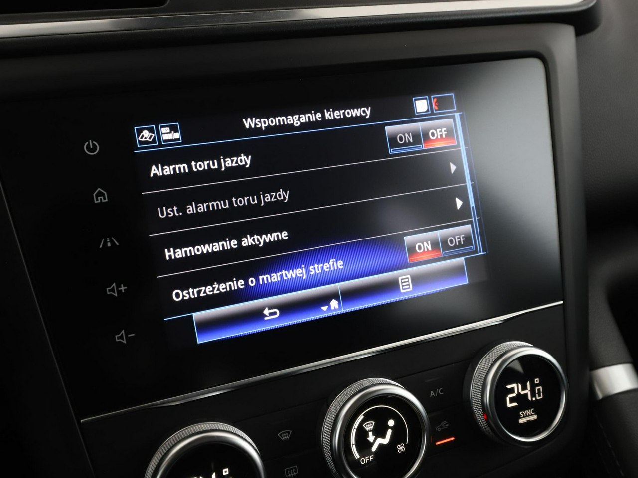 ABS, ASR (kontrola trakcji), Czujnik deszczu, Czujniki parkowania tylne, Immobilizer, Asystent pasa ruchu, Czujnik martwego pola, Czujniki parkowania przednie, Poduszka powietrzna kierowcy, Poduszka powietrzna pasażera, Poduszki boczne przednie, ESP (stabilizacja toru jazdy), Isofix, Kamera cofania, Elektryczne szyby przednie, Elektryczne szyby tylne, Elektrycznie ustawiane lusterka, Przyciemniane szyby, Wielofunkcyjna kierownica, Wspomaganie kierownicy, Tapicerka skórzana, Bluetooth, Gniazdo USB, Radio fabryczne, Nawigacja GPS, Centralny zamek, Komputer pokładowy, Relingi dachowe, Tempomat, Ogranicznik prędkości, Hak