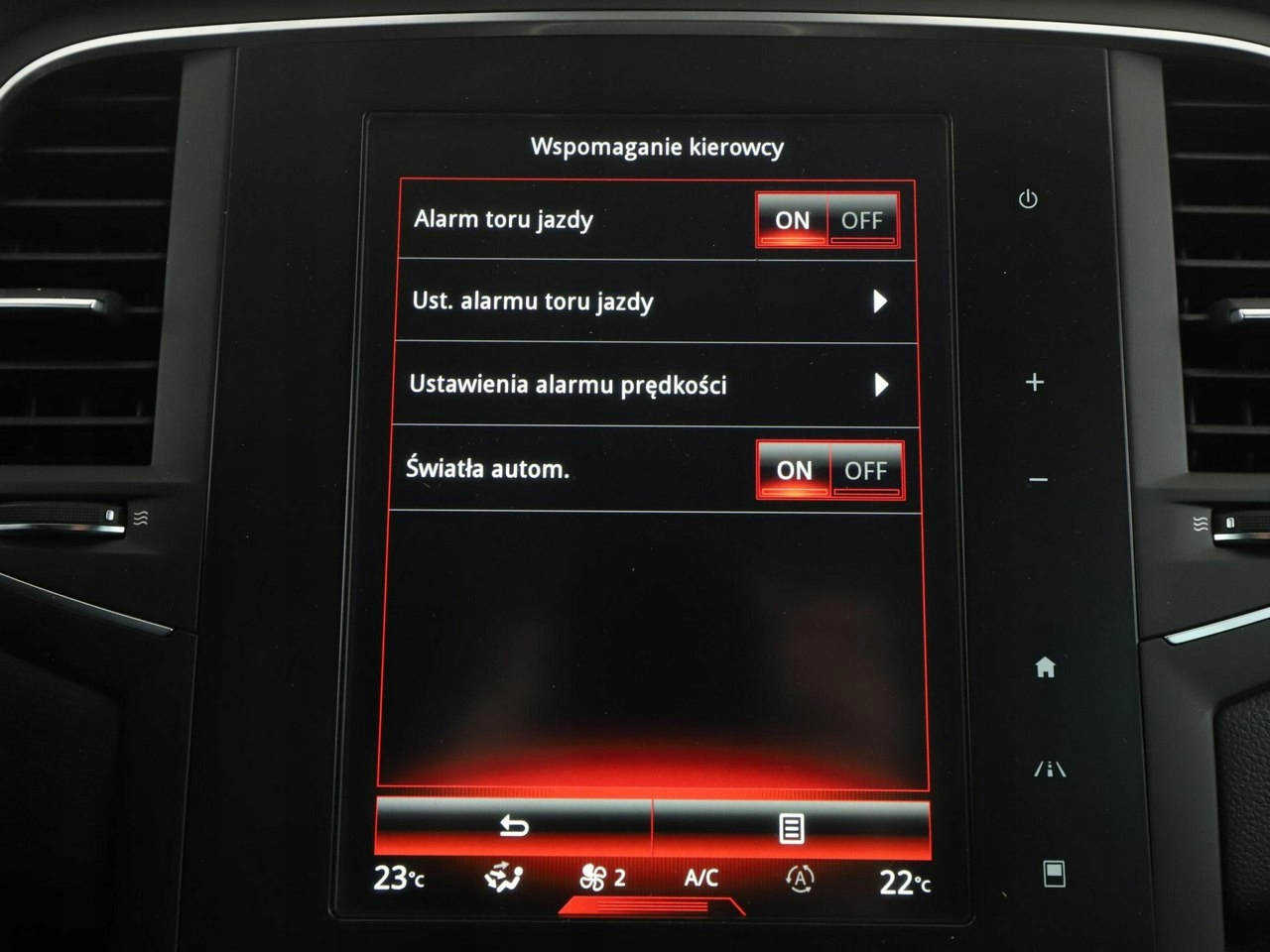 ABS, ASR (kontrola trakcji), Czujniki parkowania tylne, Immobilizer, Czujniki parkowania przednie, Poduszka powietrzna kierowcy, Poduszka powietrzna pasażera, Poduszki boczne przednie, ESP (stabilizacja toru jazdy), HUD (wyświetlacz przezierny), Isofix, Elektryczne szyby przednie, Elektryczne szyby tylne, Elektrycznie ustawiane lusterka, Podgrzewane przednie siedzenia, Przyciemniane szyby, Wielofunkcyjna kierownica, Wspomaganie kierownicy, Tapicerka alcantara, Bluetooth, Gniazdo AUX, Gniazdo USB, Radio fabryczne, Nawigacja GPS, Centralny zamek, Komputer pokładowy, Relingi dachowe, Tempomat, Ogranicznik prędkości, System Start-Stop, Łopatki zmiany biegów