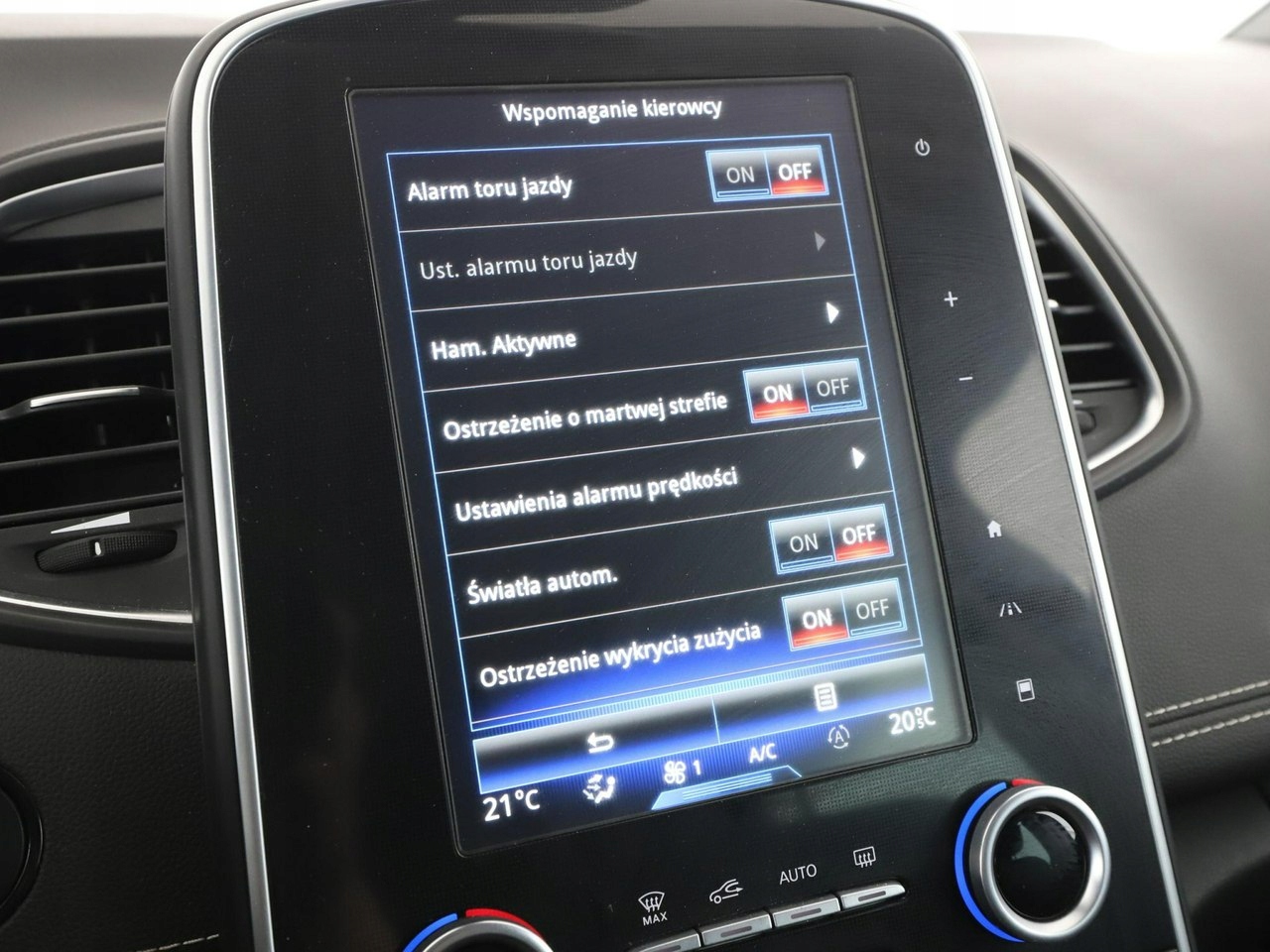 ABS, ASR (kontrola trakcji), Czujnik deszczu, Czujniki parkowania tylne, Immobilizer, Asystent pasa ruchu, Czujnik martwego pola, Czujniki parkowania przednie, Poduszka powietrzna kierowcy, Poduszka powietrzna pasażera, Poduszki boczne przednie, ESP (stabilizacja toru jazdy), HUD (wyświetlacz przezierny), Isofix, Kamera cofania, Elektryczne szyby przednie, Elektryczne szyby tylne, Elektrycznie ustawiane lusterka, Przyciemniane szyby, Wielofunkcyjna kierownica, Wspomaganie kierownicy, Tapicerka skórzana, Gniazdo AUX, Gniazdo USB, Radio fabryczne, Nawigacja GPS, Centralny zamek, Komputer pokładowy, Tempomat, Ogranicznik prędkości, System Start-Stop, Hak