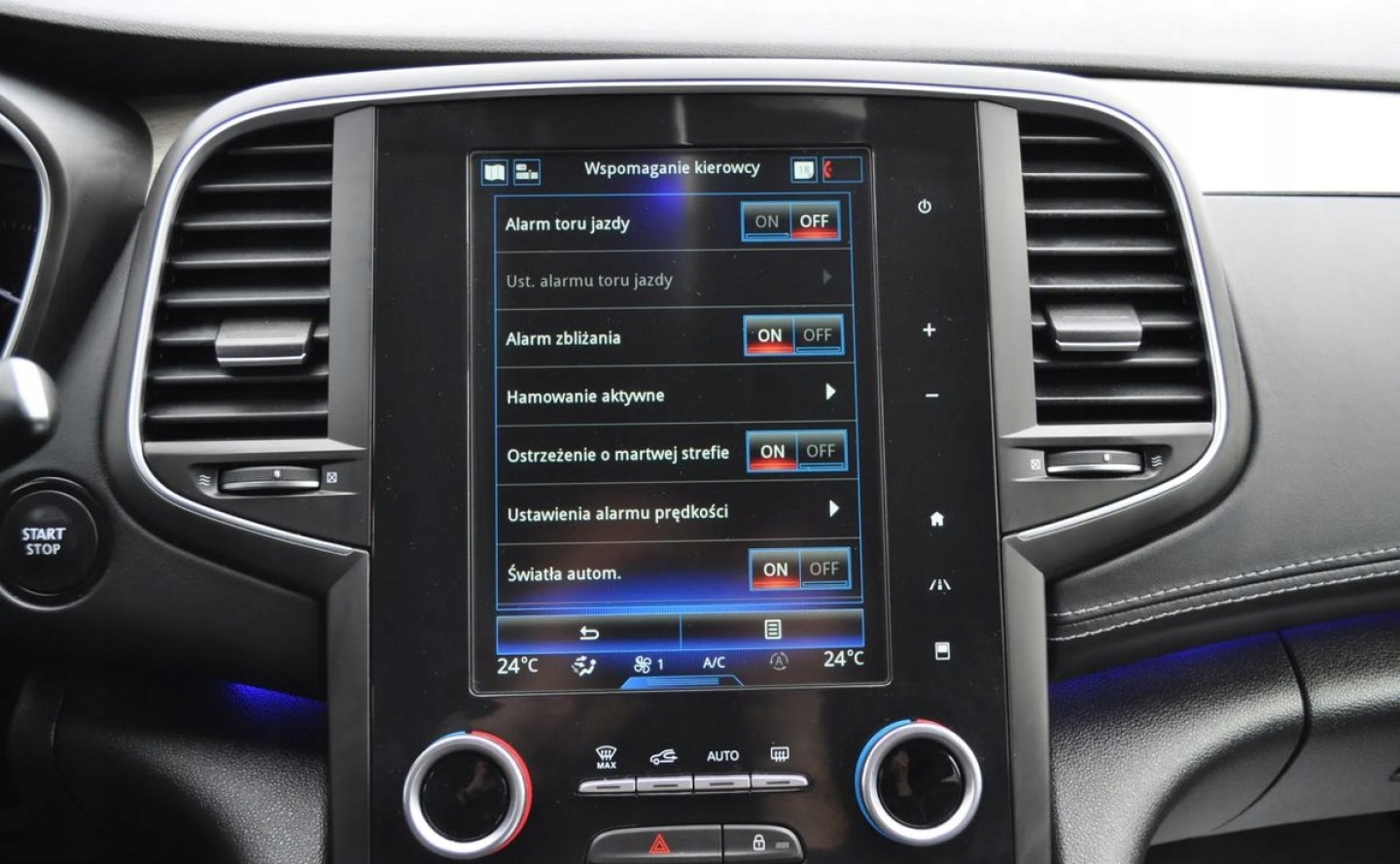 ABS, ASR (kontrola trakcji), Czujnik deszczu, Czujniki parkowania przednie, Czujniki parkowania tylne, Czujnik martwego pola, Czujnik zmierzchu, ESP (stabilizacja toru jazdy), HUD (wyświetlacz przezierny), Isofix, Kamera cofania, Kurtyny powietrzne, Poduszka powietrzna kierowcy, Poduszka powietrzna pasażera, Poduszki boczne przednie, Elektryczne szyby przednie, Elektryczne szyby tylne, Elektrycznie ustawiane fotele, Elektrycznie ustawiane lusterka, Podgrzewane lusterka boczne, Podgrzewane przednie siedzenia, Podgrzewane tylne siedzenia, Przyciemniane szyby, Tapicerka skórzana, Wentylowane fotele, Wielofunkcyjna kierownica, Wspomaganie kierownicy, Skórzana kierownica, Bluetooth, Gniazdo USB, Nawigacja GPS, Radio fabryczne, Alufelgi, Bezkluczykowy dostęp, Elektrochromatyczne lusterka boczne, Ogranicznik prędkości, Tempomat