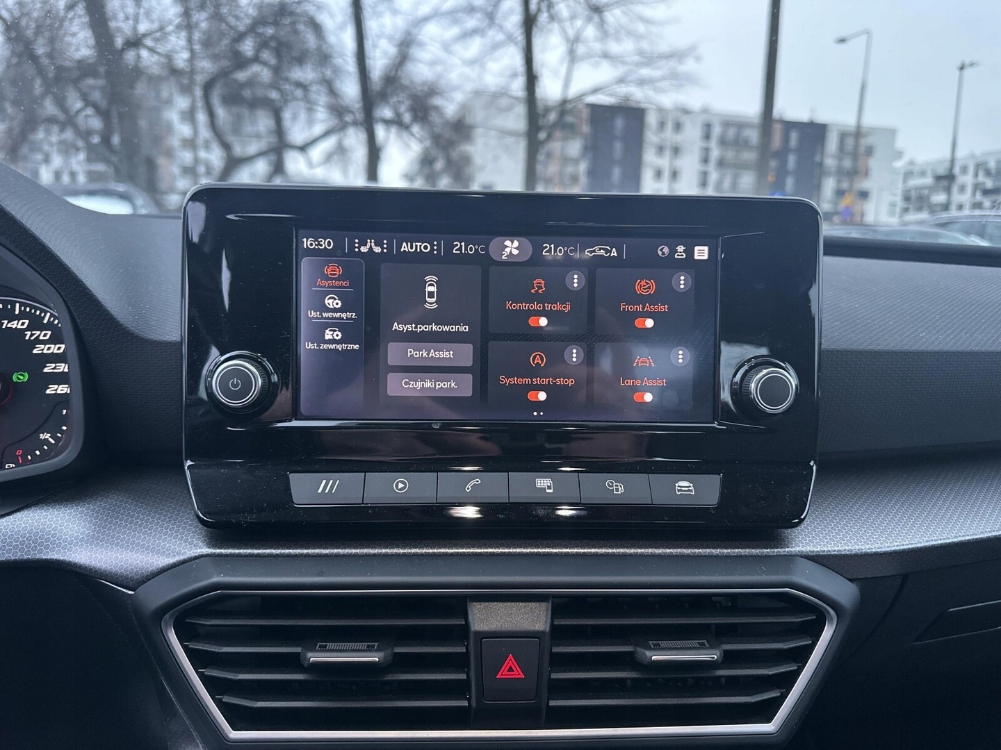 ABS, Asystent pasa ruchu, Poduszki boczne przednie, Poduszki boczne tylne, Czujnik zmierzchu, ESP (stabilizacja toru jazdy), Poduszka powietrzna kierowcy, Isofix, Czujniki parkowania przednie, Czujniki parkowania tylne, Elektryczne szyby przednie, Elektryczne szyby tylne, Elektrycznie ustawiane lusterka, Podgrzewane przednie siedzenia, Wspomaganie kierownicy, Bluetooth, Gniazdo USB, Radio niefabryczne, Alufelgi, Tempomat, System Start-Stop