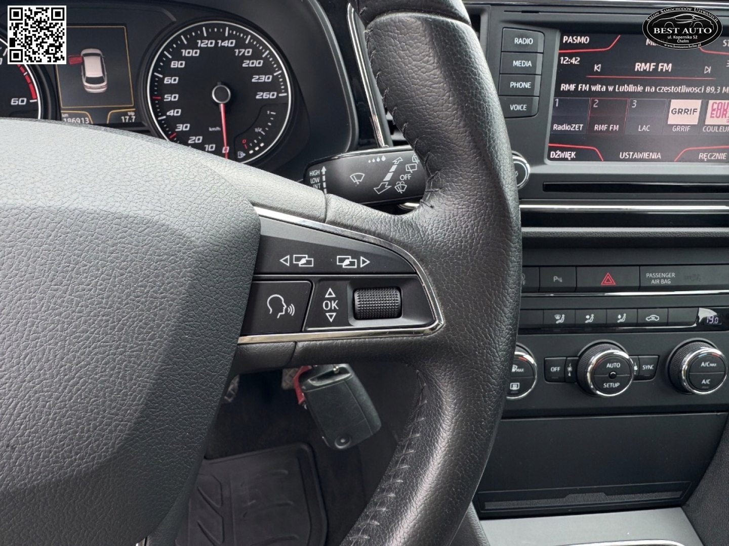ABS, ASR (kontrola trakcji), Czujnik deszczu, Czujniki parkowania przednie, Czujniki parkowania tylne, Czujnik zmierzchu, ESP (stabilizacja toru jazdy), Isofix, Kurtyny powietrzne, Poduszka powietrzna chroniąca kolana, Poduszka powietrzna kierowcy, Poduszka powietrzna pasażera, Poduszki boczne przednie, Elektryczne szyby przednie, Elektryczne szyby tylne, Elektrycznie ustawiane lusterka, Podgrzewane lusterka boczne, Tapicerka tekstylna, Wielofunkcyjna kierownica, Wspomaganie kierownicy, Skórzana kierownica, Gniazdo USB, Nawigacja GPS, Radio fabryczne, Alufelgi, Elektrochromatyczne lusterka boczne, System Start-Stop, Tempomat aktywny