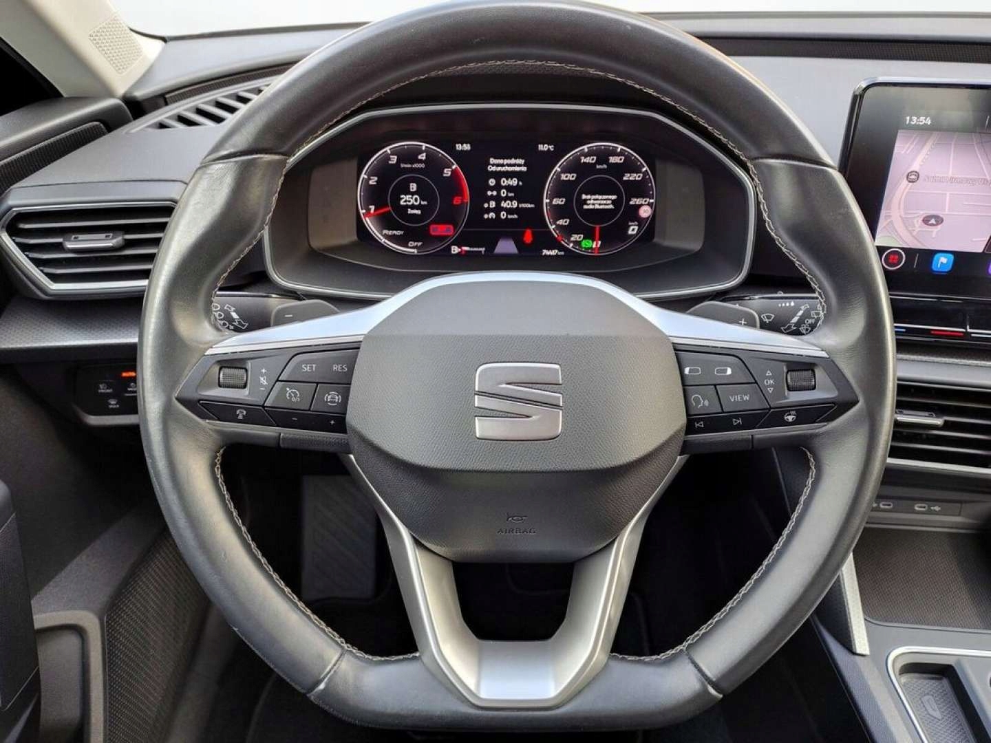 ABS, ASR (kontrola trakcji), Asystent pasa ruchu, Czujnik deszczu, Czujniki parkowania przednie, Czujniki parkowania tylne, Czujnik zmierzchu, ESP (stabilizacja toru jazdy), Isofix, Kurtyny powietrzne, Poduszka powietrzna kierowcy, Poduszka powietrzna pasażera, Poduszki boczne przednie, Elektryczne szyby przednie, Elektryczne szyby tylne, Elektrycznie ustawiane lusterka, Podgrzewana kierownica, Podgrzewane lusterka boczne, Podgrzewane przednie siedzenia, Podgrzewane tylne siedzenia, Przyciemniane szyby, Tapicerka tekstylna, Wielofunkcyjna kierownica, Wspomaganie kierownicy, Skórzana kierownica, Bluetooth, Gniazdo USB, Nawigacja GPS, Radio fabryczne, Bezkluczykowy dostęp, Elektrochromatyczne lusterka boczne, Łopatki zmiany biegów, System Start-Stop
